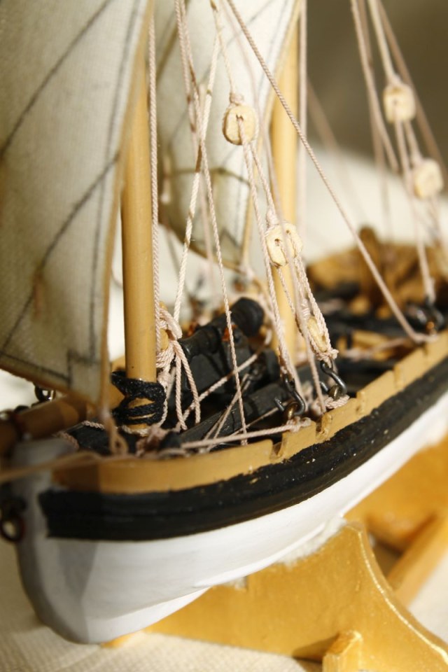 Песочница выбрана вполне осознано, в галерею к парусникам она объективно не тянет. Модель делалась исключительно на волне энтузиазма от журнала а потом была щедро присыпана деталями сомнительной достоверности. Уже по готовности модели стало понятно что она тянет только на то чтоб поставить на полку и любоваться не слишком пристально вглядываясь, снимая как раз пытался передать не очень пристальный взгляд в том виде в котором моделька мне тогда нравилась. Хотя признаю с ГРИП местами просчитался.
