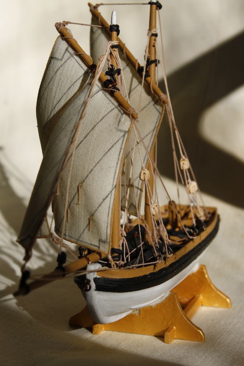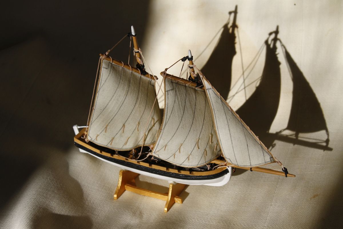 После сборки корпуса показалось что он какойто плоский и борт был нарощен планширем и еще одной доской с местами под уключины. И все равно он смотрелся одиноко и скучно. В процессе придания "интересности" появились паруса и пушка (из набора Гота-Предестинации). В общем после сборки осталась масса впечатлений и обещание себе непременно сделать чтонибудь большое парусное и из дерева.