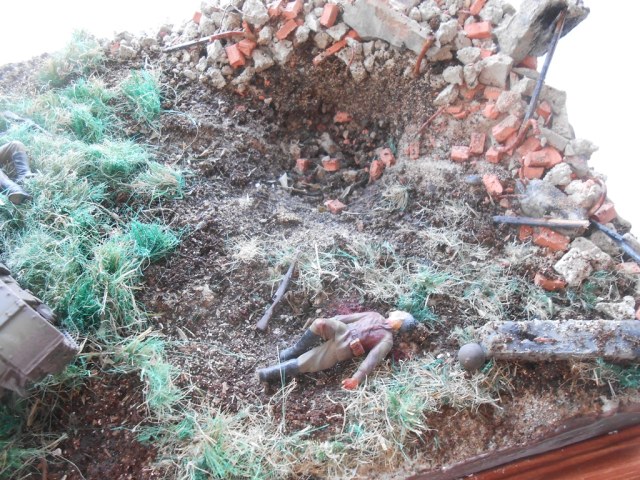 Не согласен,автор просто отлично выразил настоящий драматизм войны.Такие диарамы всегда душу трогают.Диорамы без погибших это просто мирная сценка.Взять тотже кинематограф-фильм "Брестская крепость",наврятли он собрал бы столько рейтинга небуть там столько трагедии.Повторяю,очень отличный сюжет.