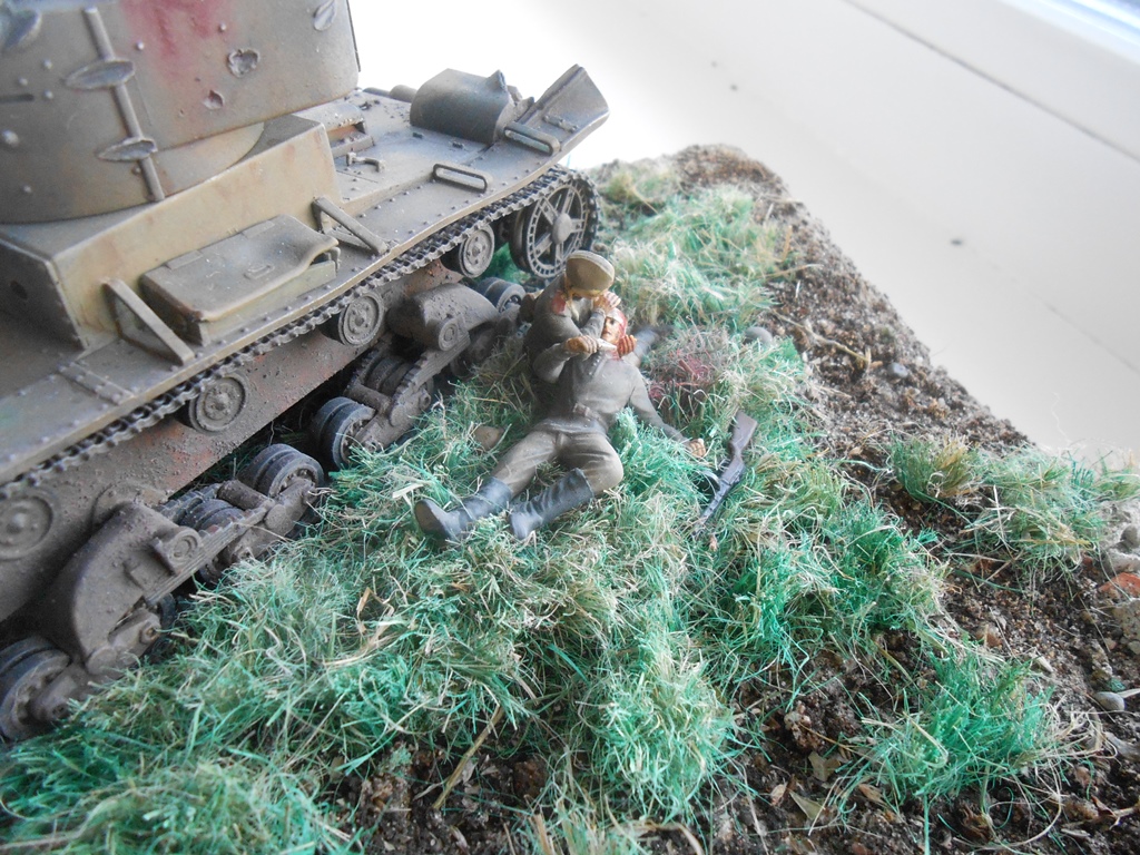 согласен с замечаниями насчет историчности. Отмечал это ранее. Ну к сожалению что есть то есть. НУ НЕБЫЛО У НАС В ГОРОДЕ ДРУГИХ СОВЕТСКИХ ТАНКОВ ПЕРИОДА ВОВ. )) Было пару немцев и один КВ-2. Но его забрали пока по магазинам мотался. с травой тоже как-то не очень вышла. делал по методике отсюда http://www.diorama.ru/workshop/features/200/, но получилось подругому. Учимся, работаем в этом направлении. Спасибо за советы.