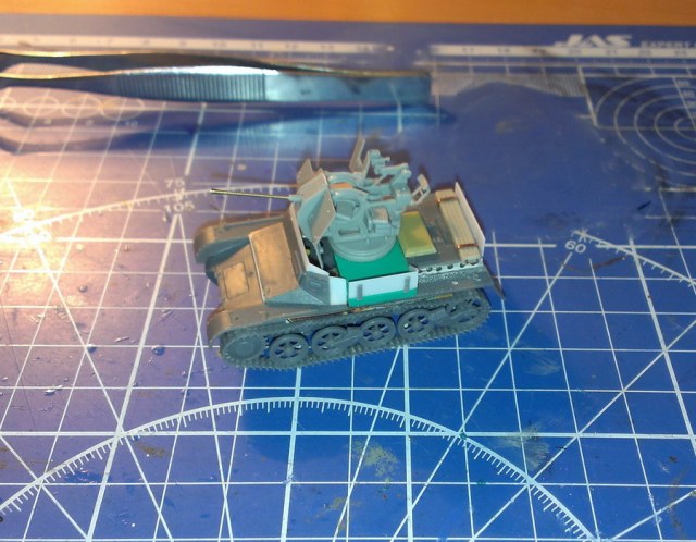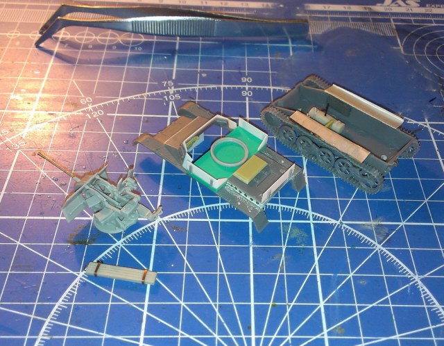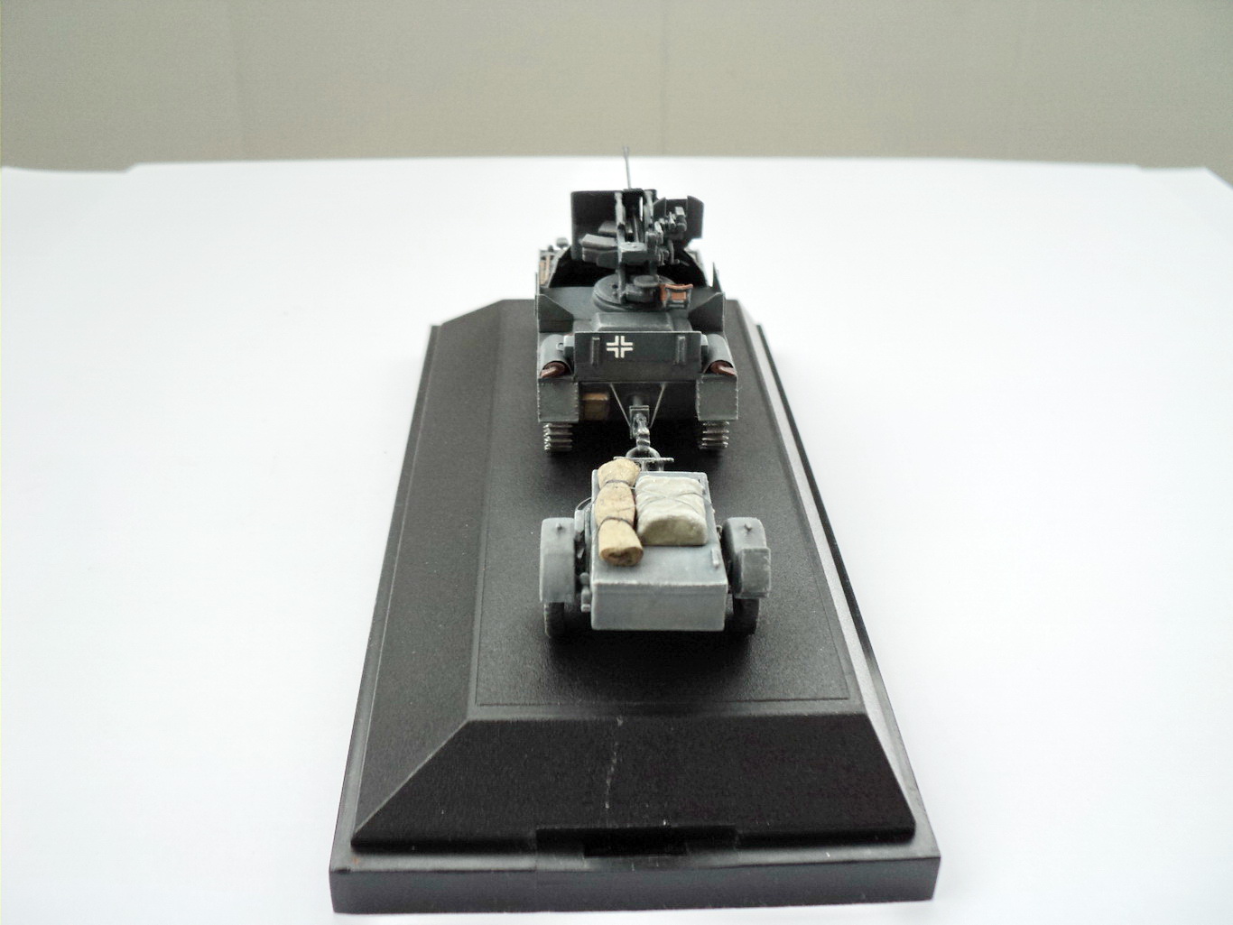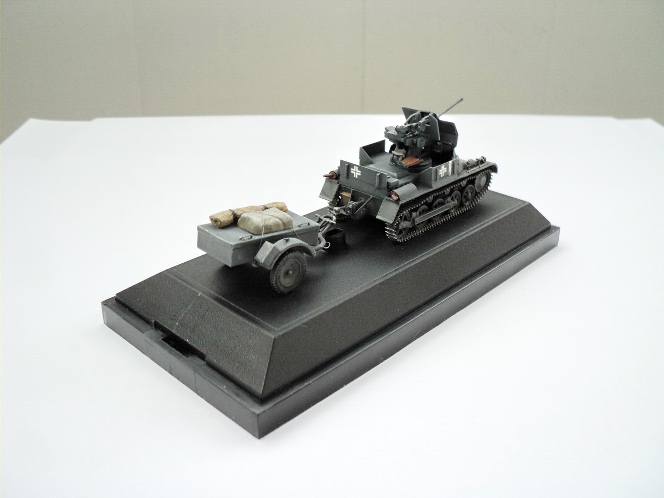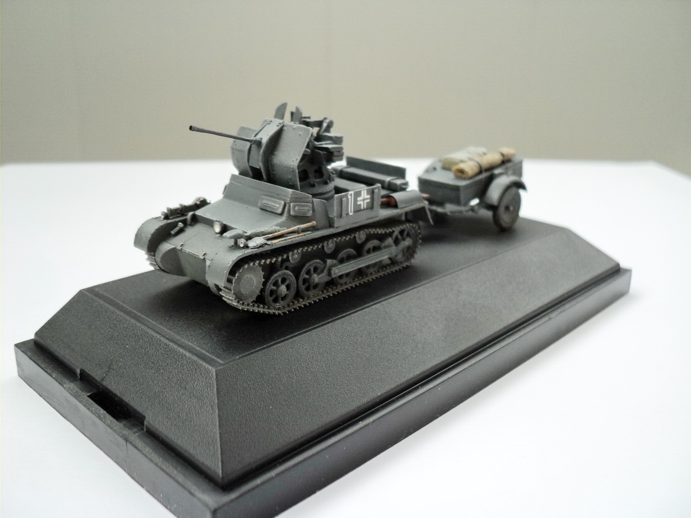 Желание иметь такую самоходку пришло тогда, когда думал что делать со 2 набором легкого танка Pz.I Ausf.A. Были варианты и огнеметного танка, танка с 20мм пушкой "Бреда" заместо пулемёта и транспортера боеприпасов. Но внезапно вспомнил, что в запасах осталась 2см зенитное орудие Flak 38 от модели Horch фирмы Dragon. Тогда и было принято окончательное решение в пользу зенитной САУ.