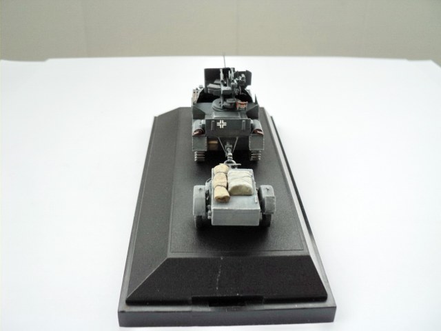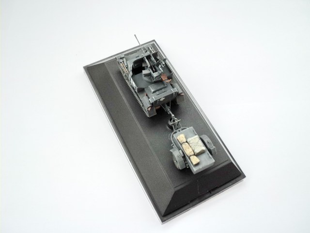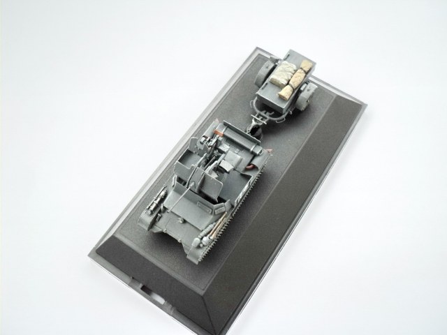 Доработки были "обширные": отрезал все лишнее, сдвинул вперед лобовую броню со смотровыми щелями, немного сымитировал интерьер, сделал откидные борта, ящик для запасных стволов, прицепное устройство; на базе прицепа для перевозки зенитного орудия сделал прицеп с ящиком для боезапаса ну и всякие мелочи... Серьезно "пролетел" с декалями - использовал от UM, после использования выкинул все декали от этой фирмы в мусорку.