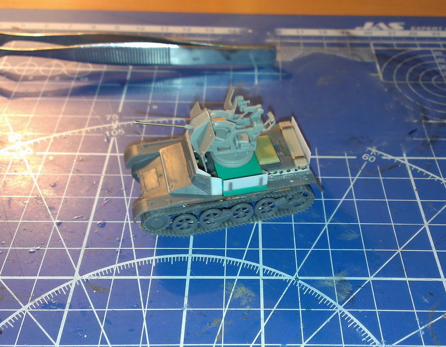 Для постройки использовал набор Pz.I от S-Model, орудие Flak 38 от Dragon, ствол от Aber, пластик от доширака, фольгу.