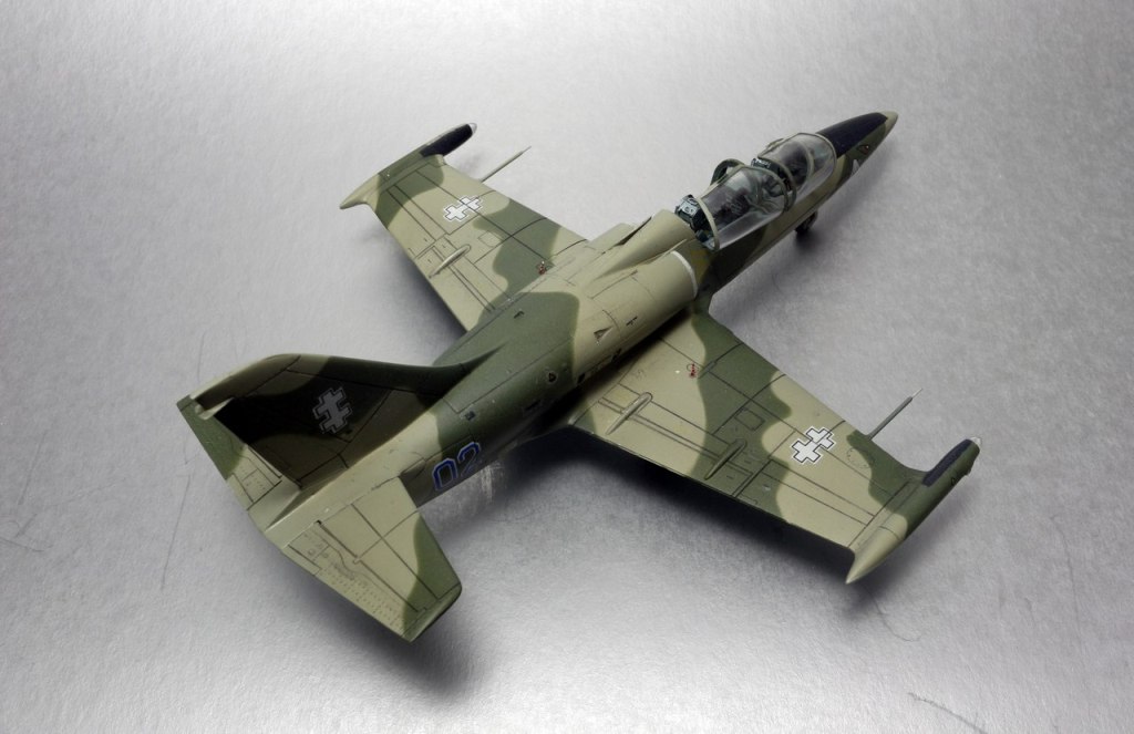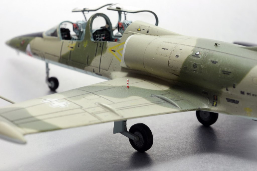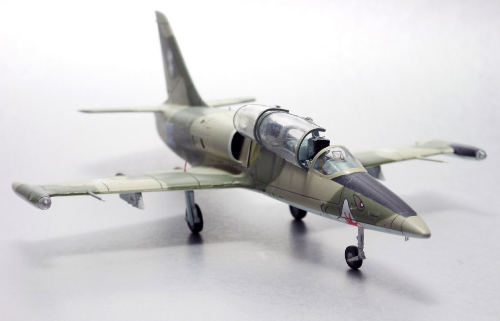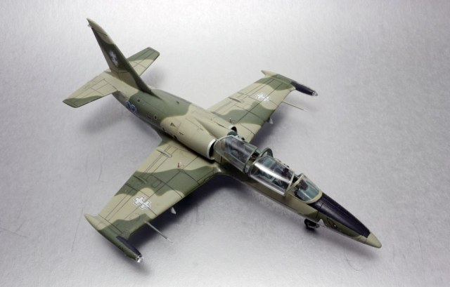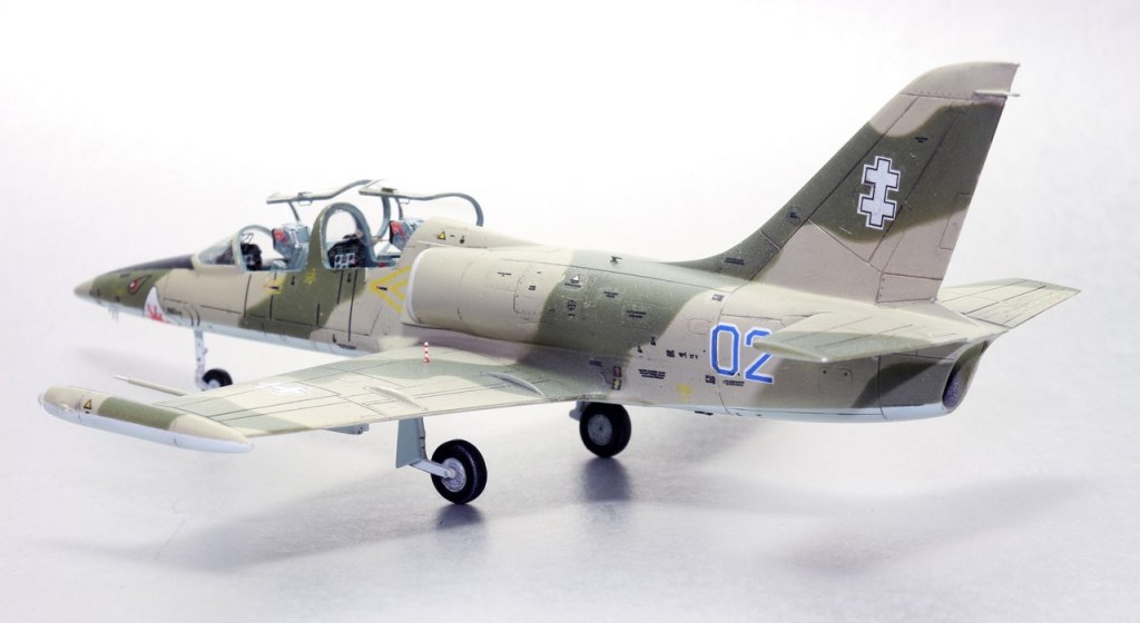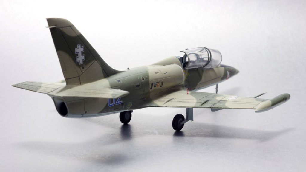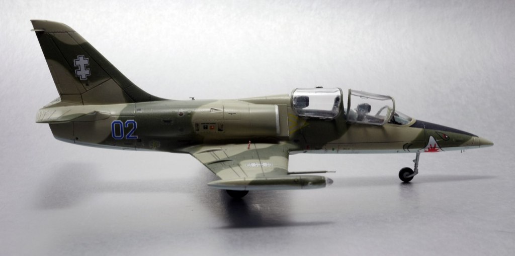 На фото на втором плане LA-39,более поздний вариант, их было две штуки. Первый несколько лет назад столкнулся в полете с истребителем Mirage, второй-же на данный момент перекрашен в серый цвет(похожий как у F-15E). По бортам 01-04 - все они летали как трехцветные. Борт 01 на данный момент находится в авиамузее Каунаса, остальные три распределены так - первый на постаменте, второй в авиаинституте, третий переоборудован для испытаний катапультных систем....как-то так. Но главное что работа удалась и всем нравится - а номер борта это так, мелочь.