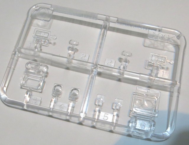 Маленький литник из прозрачного пластика с прозрачными деталями.