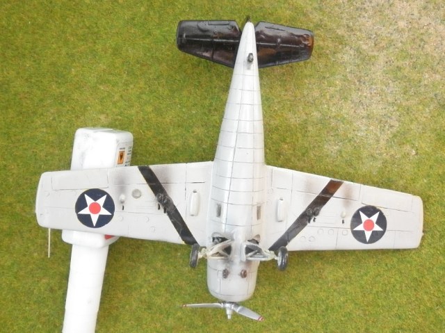 В-третьих это по сути F4F-4 в окраске под F-3, так как помимо прицела и жалюзей на капоте крыло точно от F-4, поскольку на ранних F-3 крыло было не складным и вооружение состояло из 4, а не 6 пулеметов, как на модели.