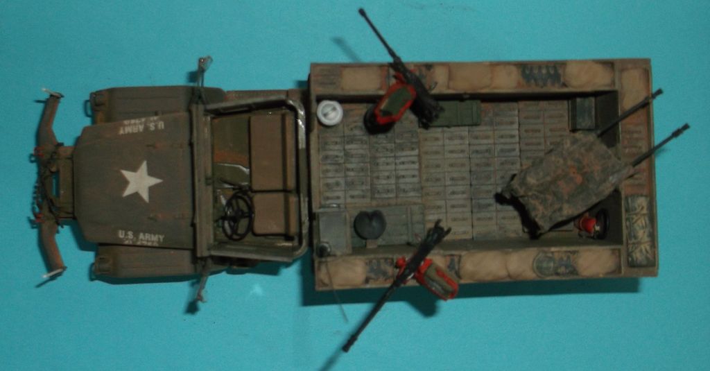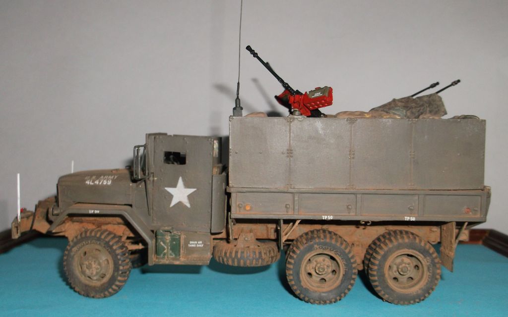 Выставляю на обозрение третий по счёту вьетнамский гантрак. Машина собрана из коробки, заменил только облицовку радиатора на более раннюю версию М35. Боевое отделение - смоляная конверсия KIRIN. В принципе ничего такого. Окраска кистью акрилом Tamiya. Пыль - глиняная пудра с трассы Ачинск - Красноярск.