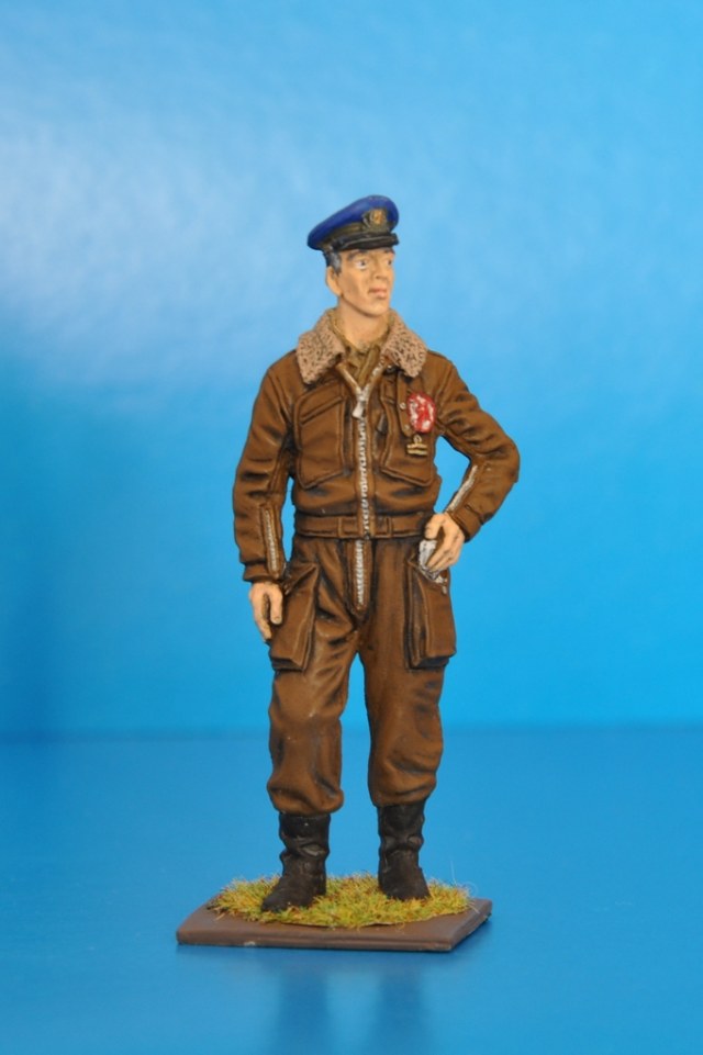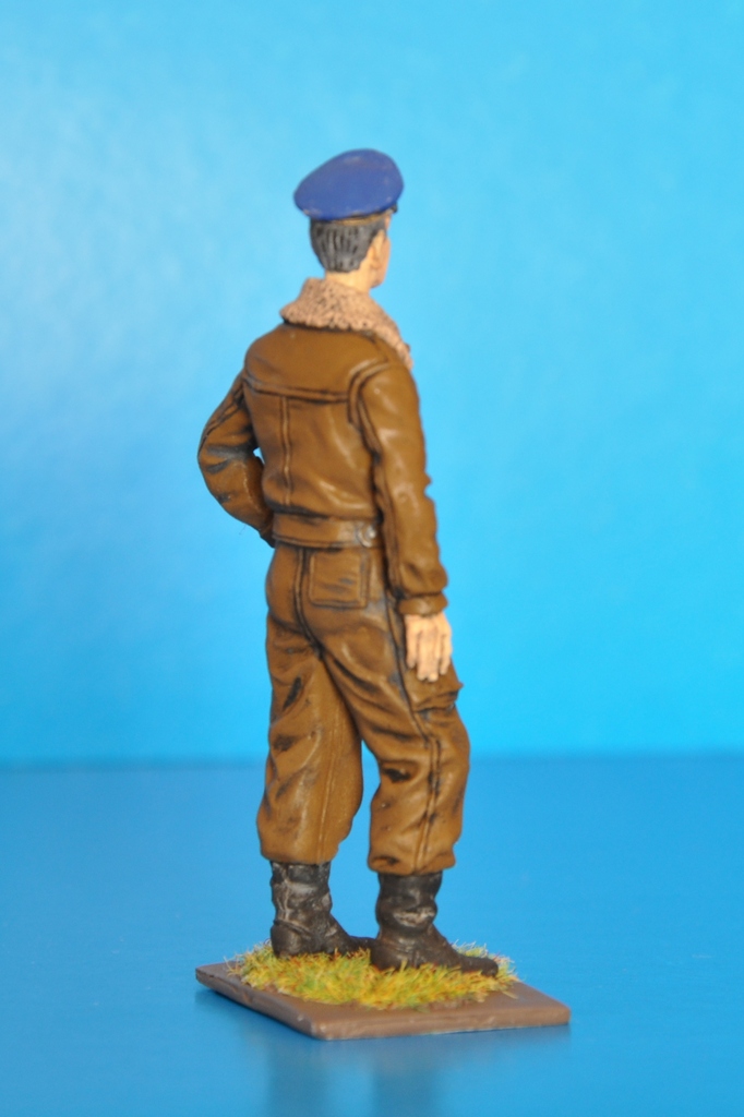 Пилот одет в зимнюю модель лётного костюма. Куртка и брюки из материи цвета хаки на утеплённой подкладке. Существовала ещё версия комбинезона. Летняя модель шилась из белой ткани. Слева на груди куртки, выше золотой нашивки лейтенанта, пришит круглый шеврон с изображением красного с белым контуром «лика дьявола» (эмблема 5-й эскадрильи «Diavoli Rossi» 2-й истребительной группы). Фуражка синего цвета с золотыми лейтенантскими полосками на околыше. Кокарда представляет собой лавровый венок с фасцией в центре. На тулье отсутствует полагающийся золотой орёл с распростёртыми крыльями.