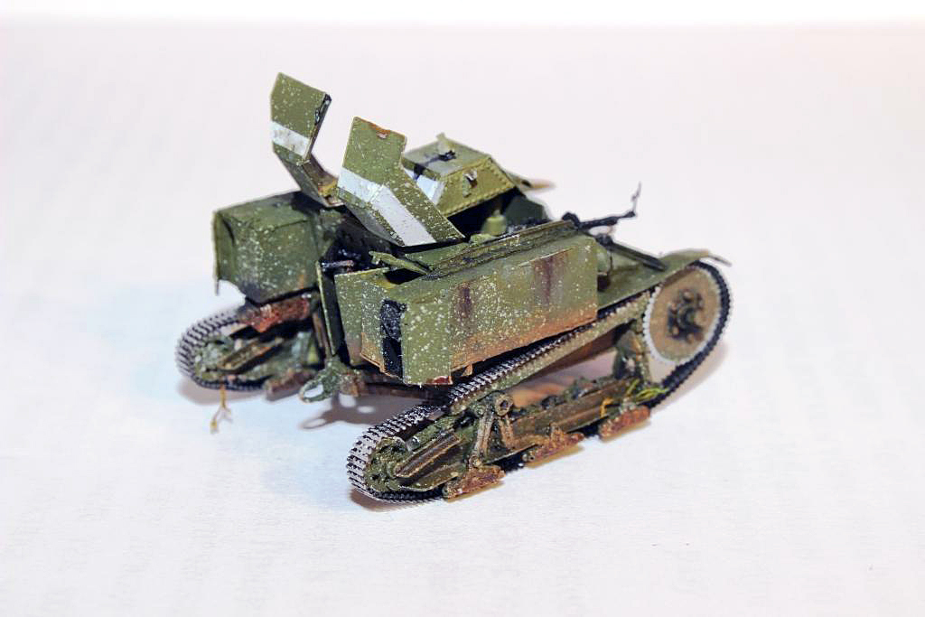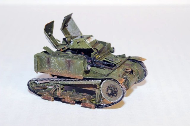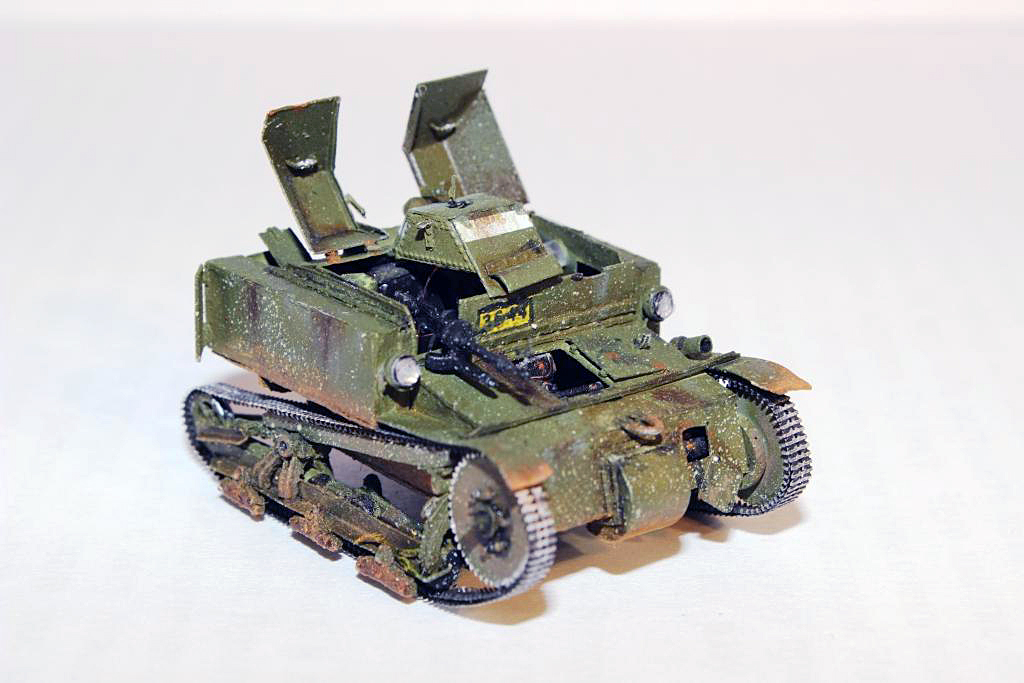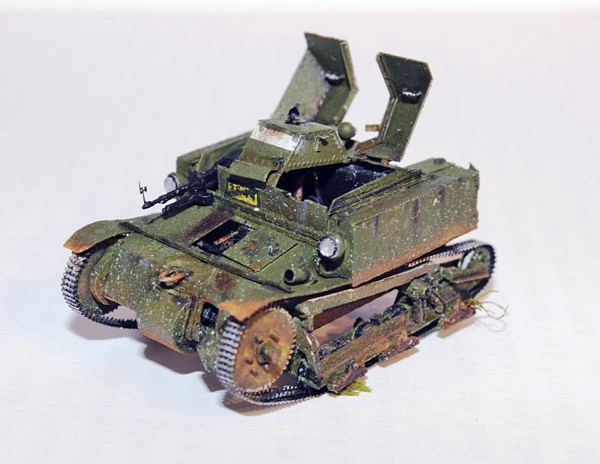 Первая партия танкеток Т-27 отличалась от остальных небронированной турелью пулемета и полностью клепаным корпусрм.