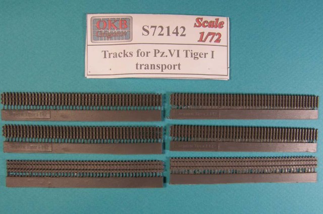ОКБ Григоров выпустил серию траков для машин Pz.VI Tiger I в масштабе 1/72. Как и раньше у ОКБ Григоров мы можем видеть высококачественное литье из смолы. Смола достаточно пластична, что позволяет сгибать ленту. Некоторые моделисты предпочитают перед этим нагревать изделие в горячей воде.