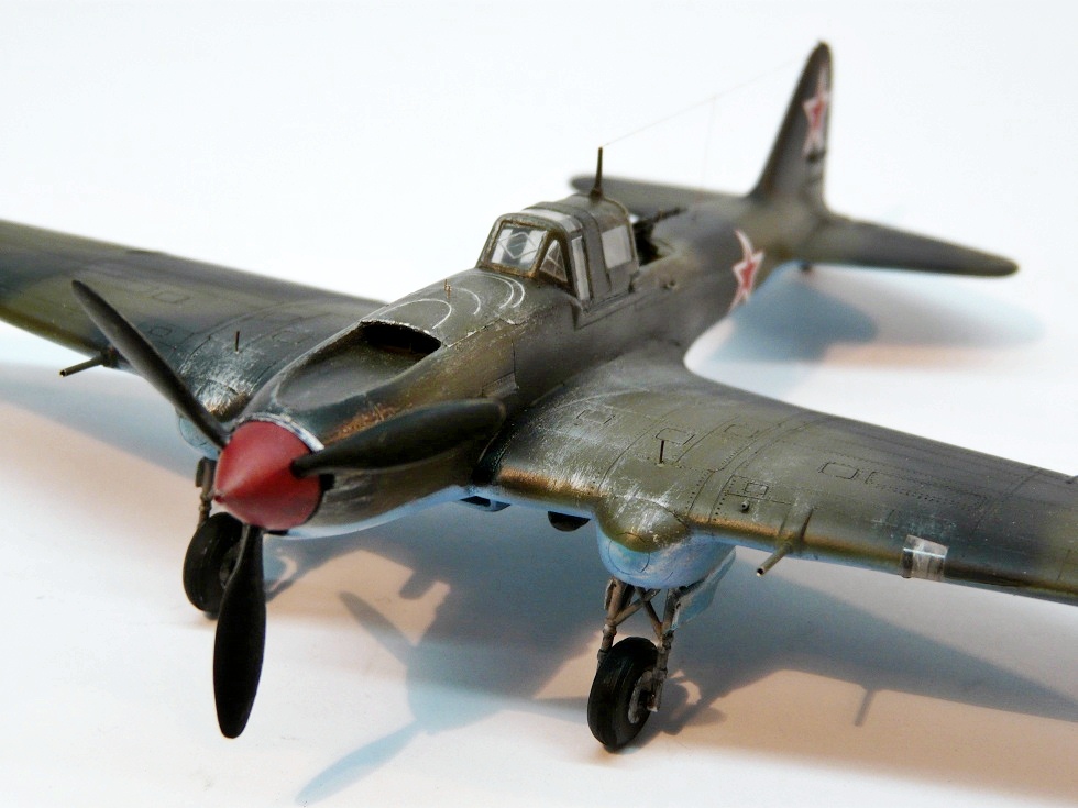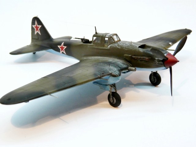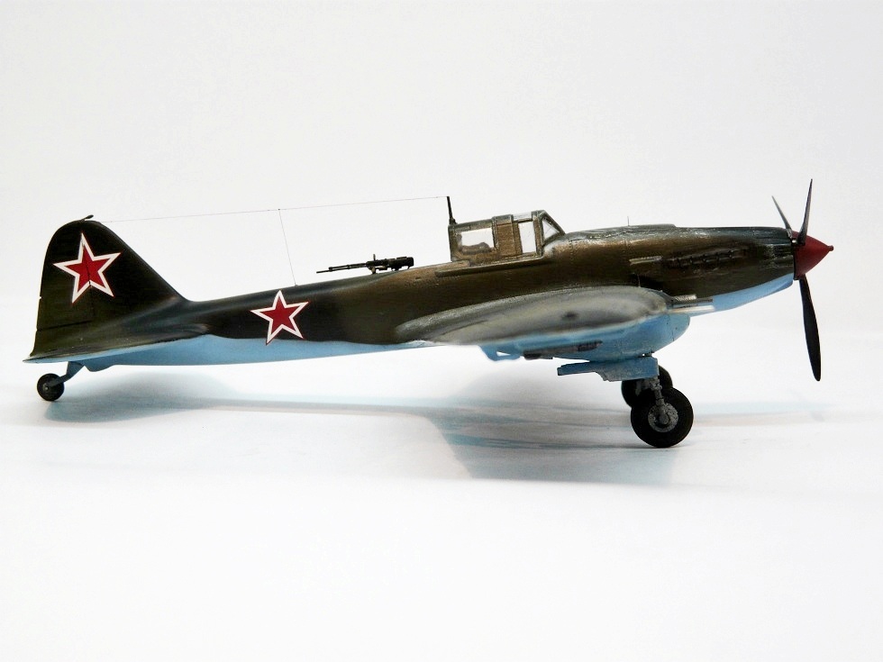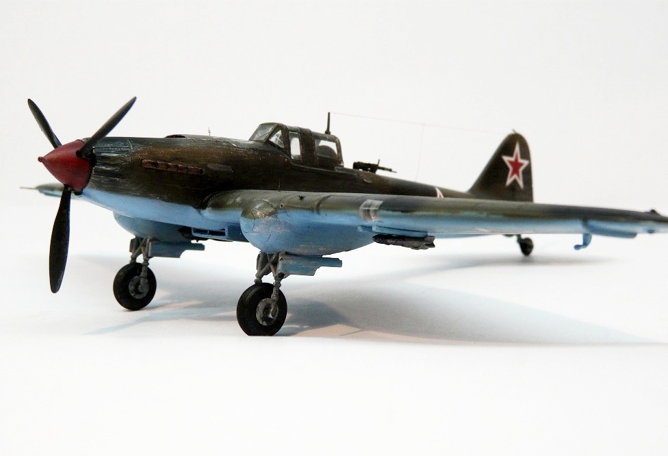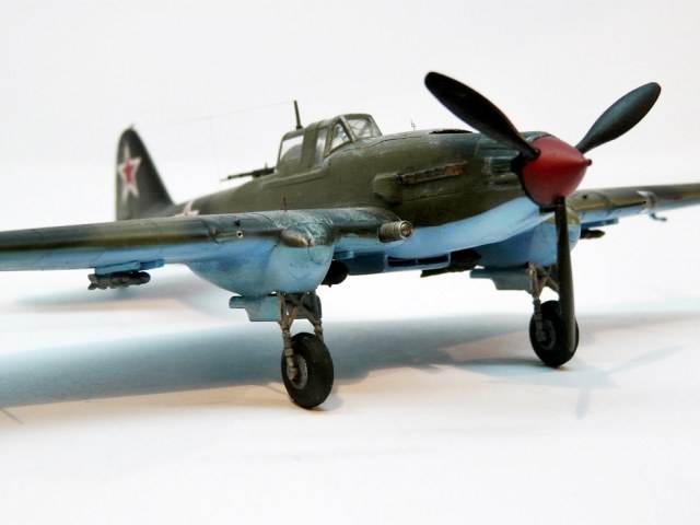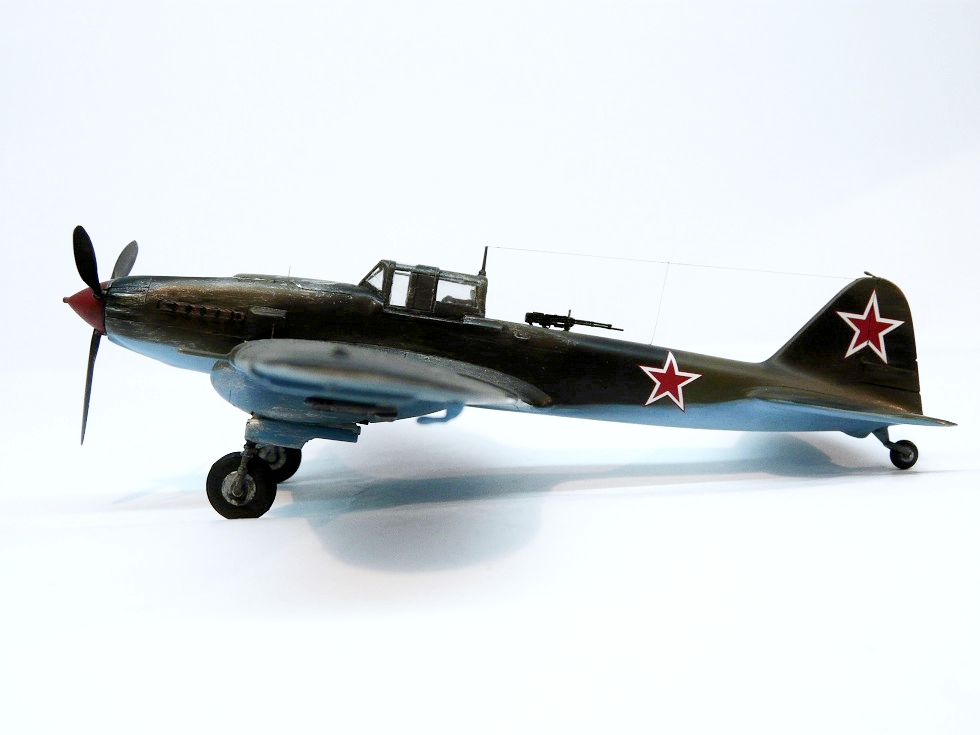 Присоединяюсь к похвалам и критике коллег )). От себя скажу, что в последнее время частенько стали появляться эти самолеты (Ил-2). И это здорово! Ваш - один из самых удачных, на мой взгляд.