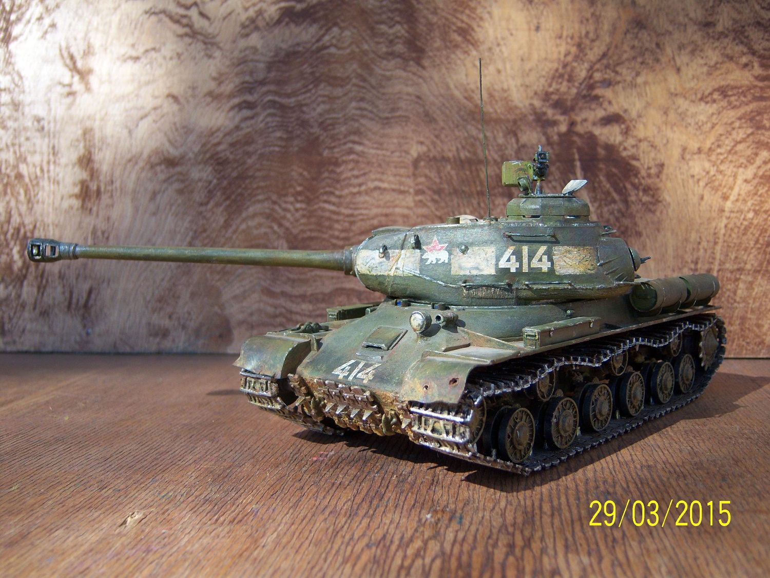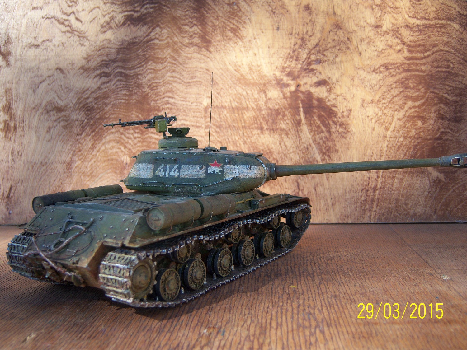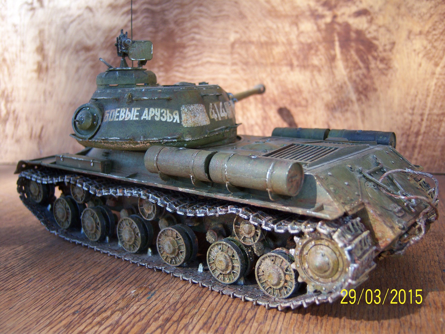 Выставляю на всеобщее обсуждение свою первую модель "ИС-2", в третьей попытке (после работы над ошибками)-убрал излишнюю "ржавчину"(хотя я хотел показать не ржавчину , а пыль красного кирпича, при боях в городских условиях...но смотрится действительно больше как ржачина... модель "ИС-2" от "ЗВЕЗДЫ" собирал примерно 2 недели-в свободное от работы и семьи время...красил кистью, краски от "ЗВЕЗДЫ",все детали родные от "ЗВЕЗДЫ"...гусеницы силиконовые -что бы придать им естественный вид, прикрепил их к корпусу, стальной проволокой.. трос из медной проволоки.. к ДШК приделал коропку с патронами.. антена из стальной проволоки (стальную проволоку взял из стального троса) ..Вообще мне нравиться когда модели техники имеют естественный вид в полевых условиях, т. е. грязь, ржавчина, повреждения( танки грязи не боятся). но "повреждать танк сильно не стал...ну вообщем так.