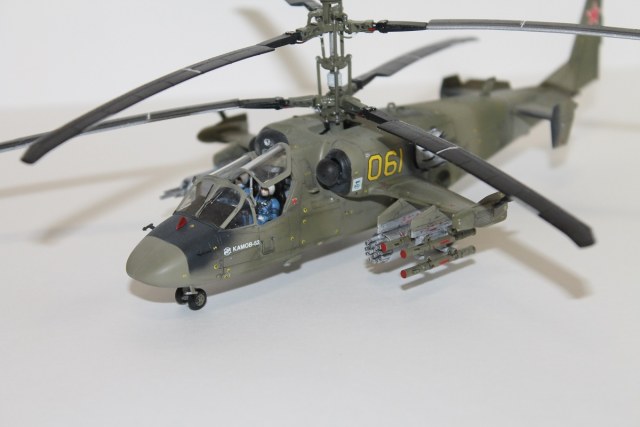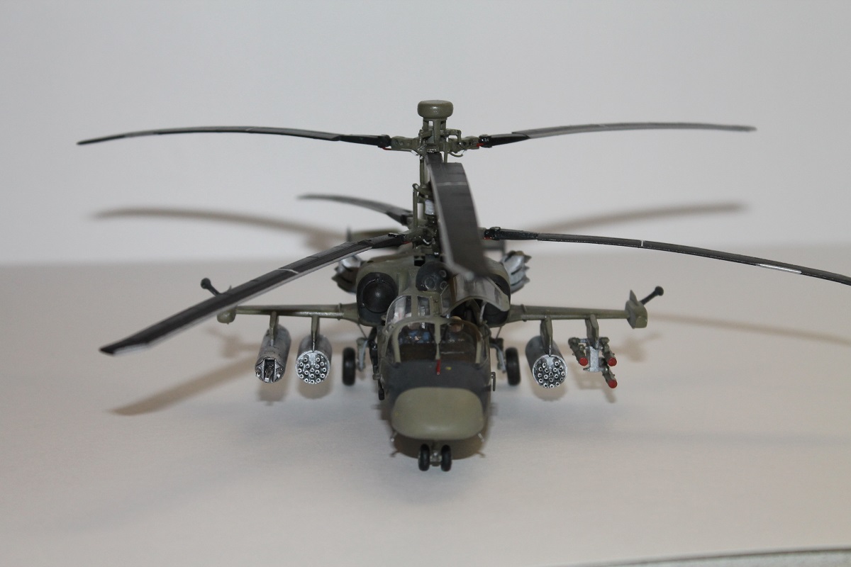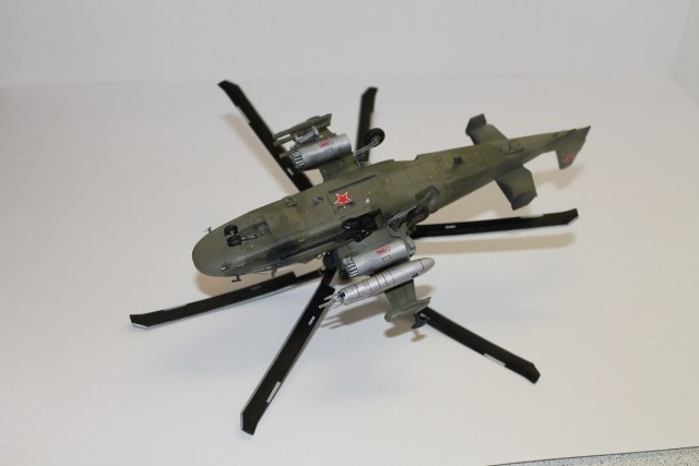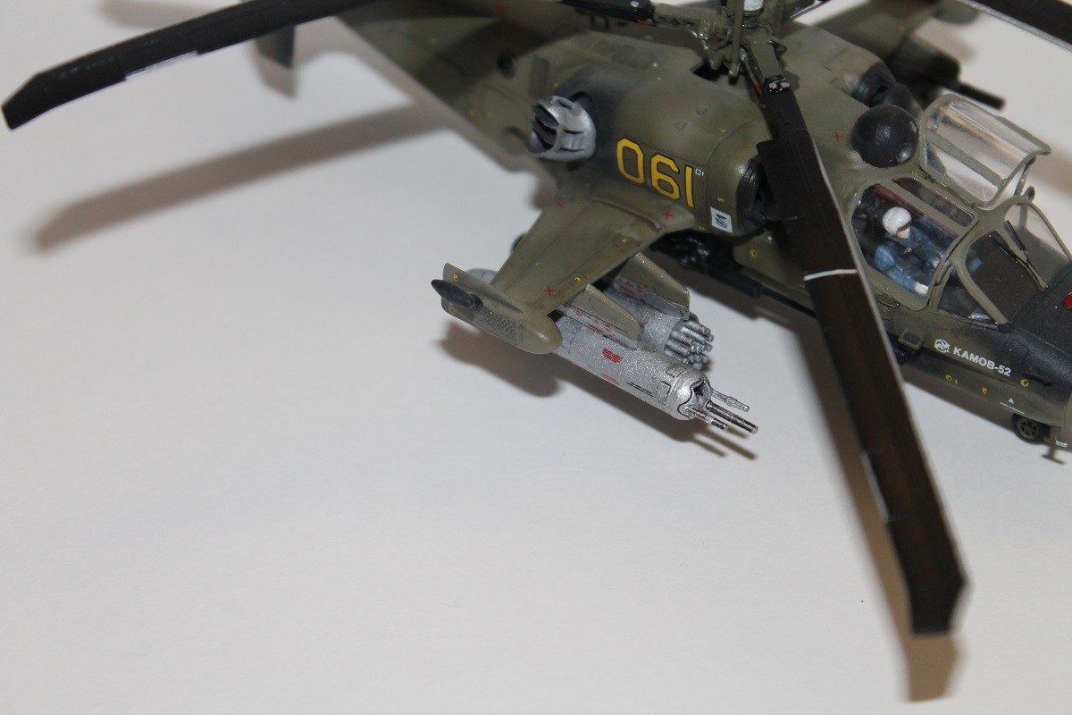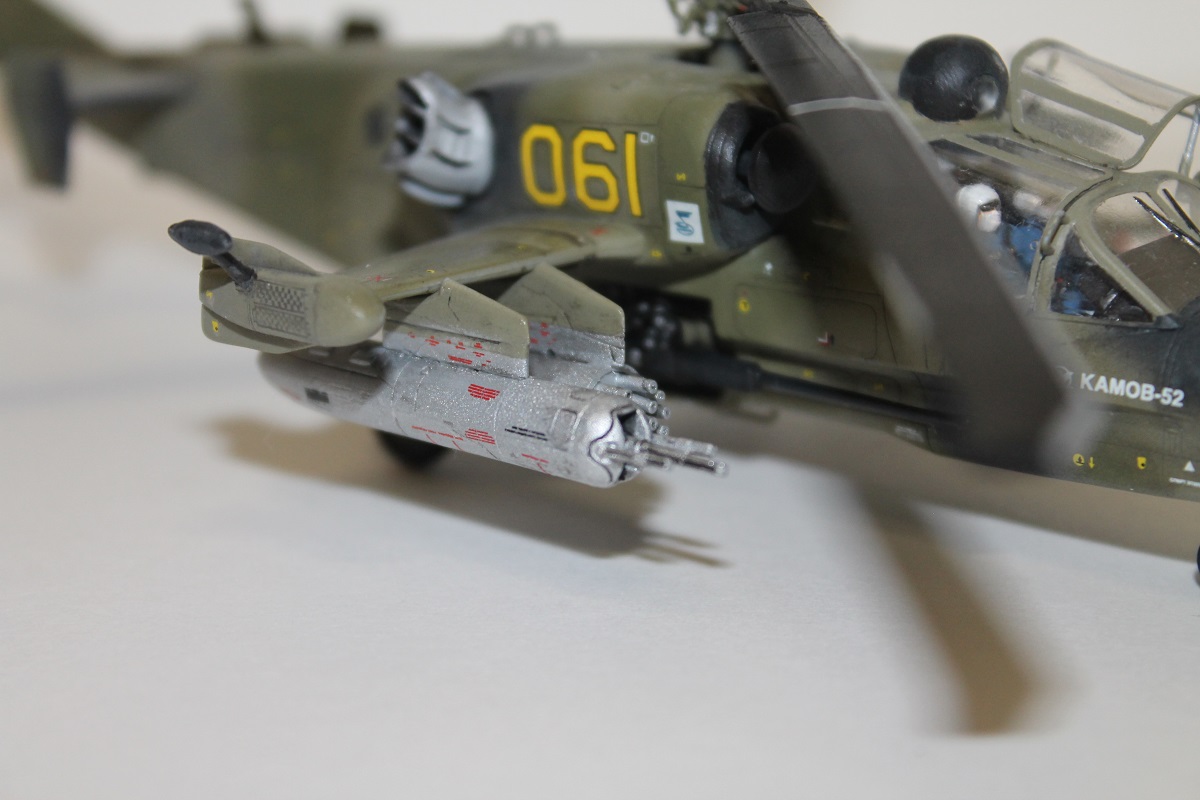 Мне, лично, тоже не нравятся размытые границы камуфляжа, не понравилась копоть вокруг выходных устройств двигателей - как-то неестественно легла. В целом работа понравилась. Достойная модель. К сожалению, вживую с ка-шками не сталкивался, поэтому сравнивать не с чем. Подскажите - красные торцы на ПТУР - это откуда? Может, отстаю от жизни, но видел только в цвет контейнера ракеты... Если есть - киньте фото...