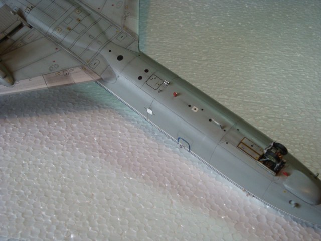 Проблемы есть в любой деки, Я человек который не сильно жалуется на то, что даёт производитель. Мой девиз: НАДО ИМЕТЬ ГОЛОВУ, А НЕ ПРОДОЛЖЕНИЕ ШЕИ, и всё получится. К примеру, на этой деке сильно задрана кормовая часть, если делать без расчёта просто можно залесть на руль направления. Поэтому я её урезал в районе пилона двигателя и как можно вытянул к створкам ВСУ. А сама Дека сильная, основа класс. Полчаса можно гонять по модели кисточкой пока не установишь там где нужно.