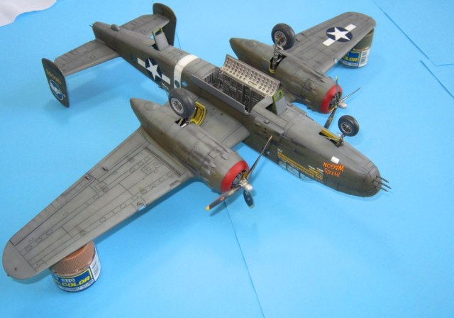 В процесси покраски были использованы непосредственно в нутри интеръерных работ физюляжа, кобины пилотов, гондолов нише шасси и турелей краски от фирмы Model Master.