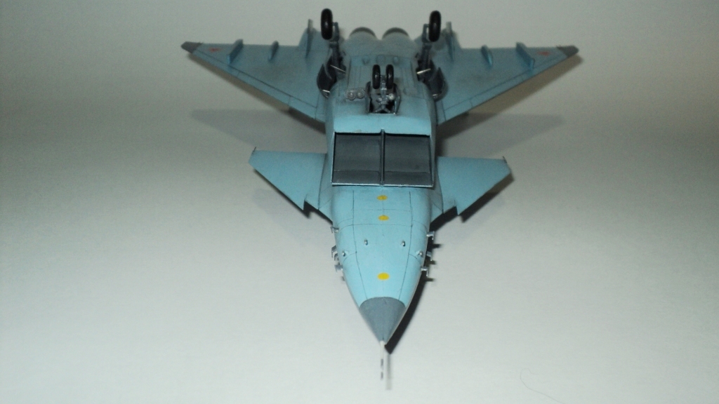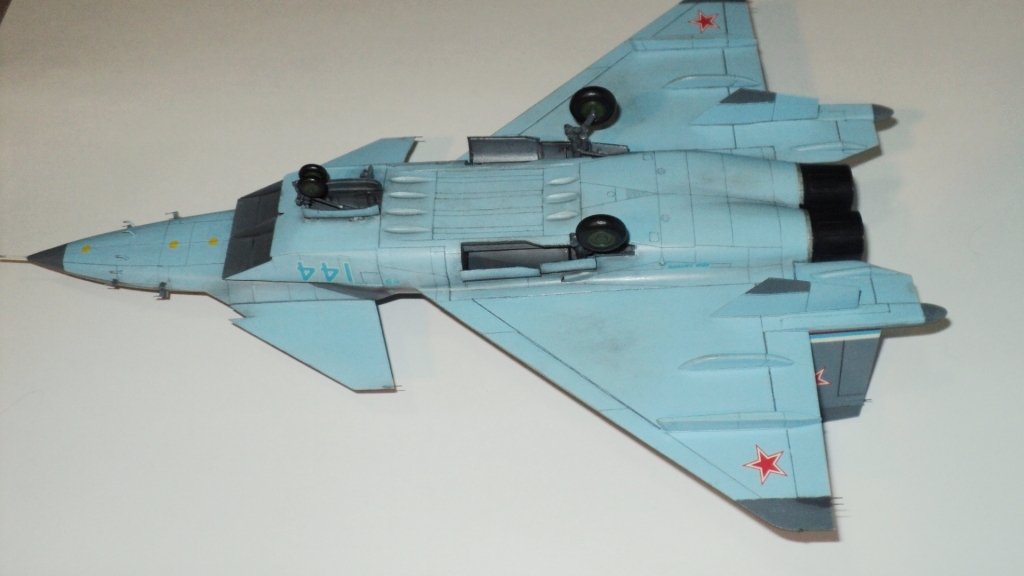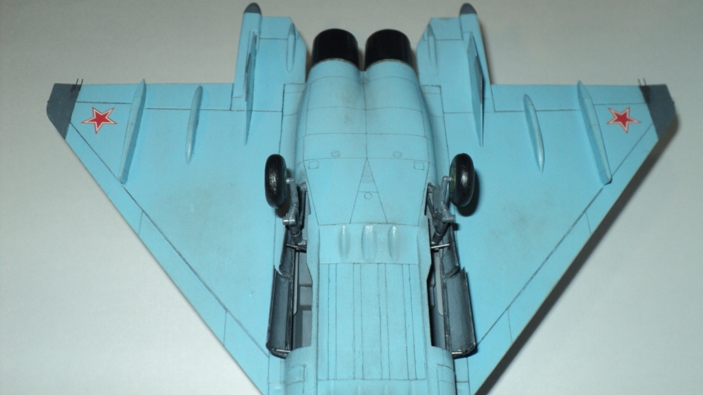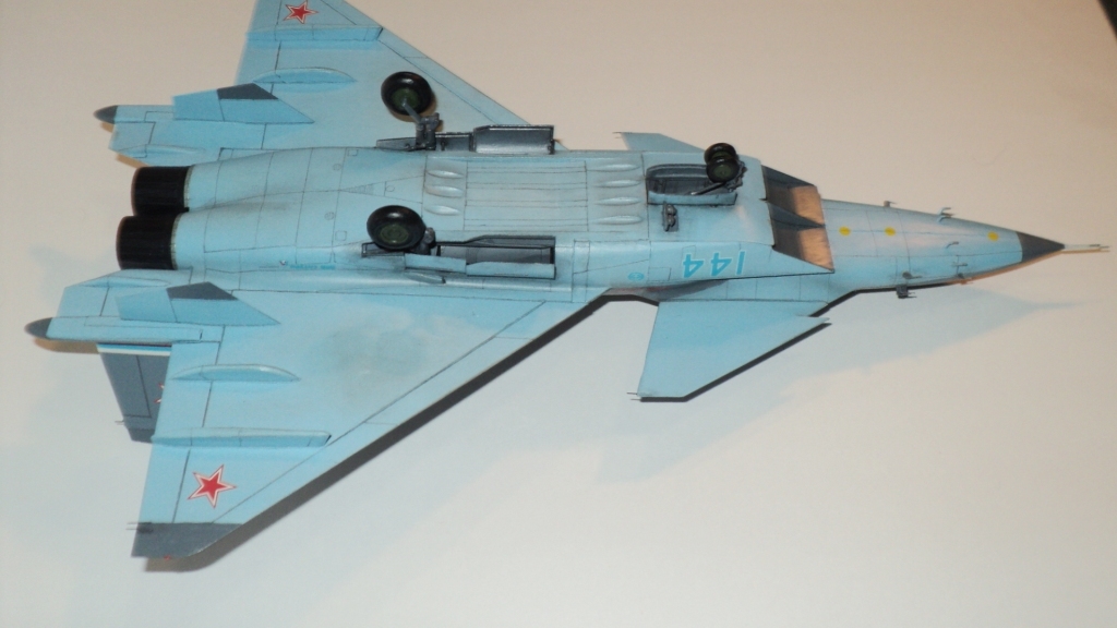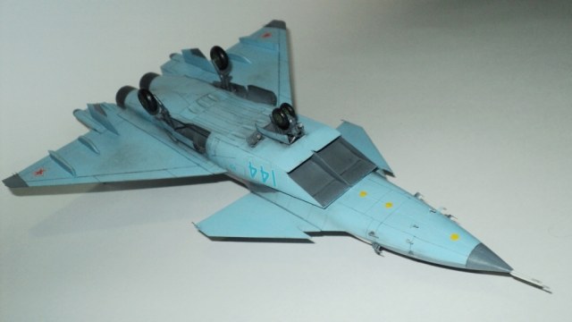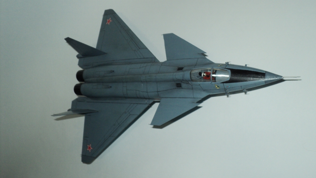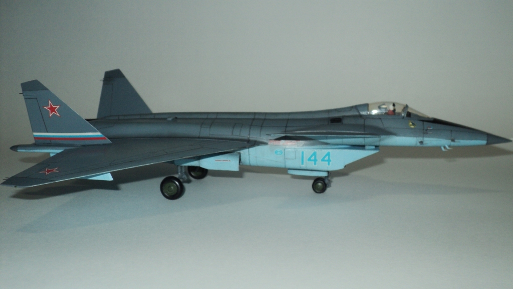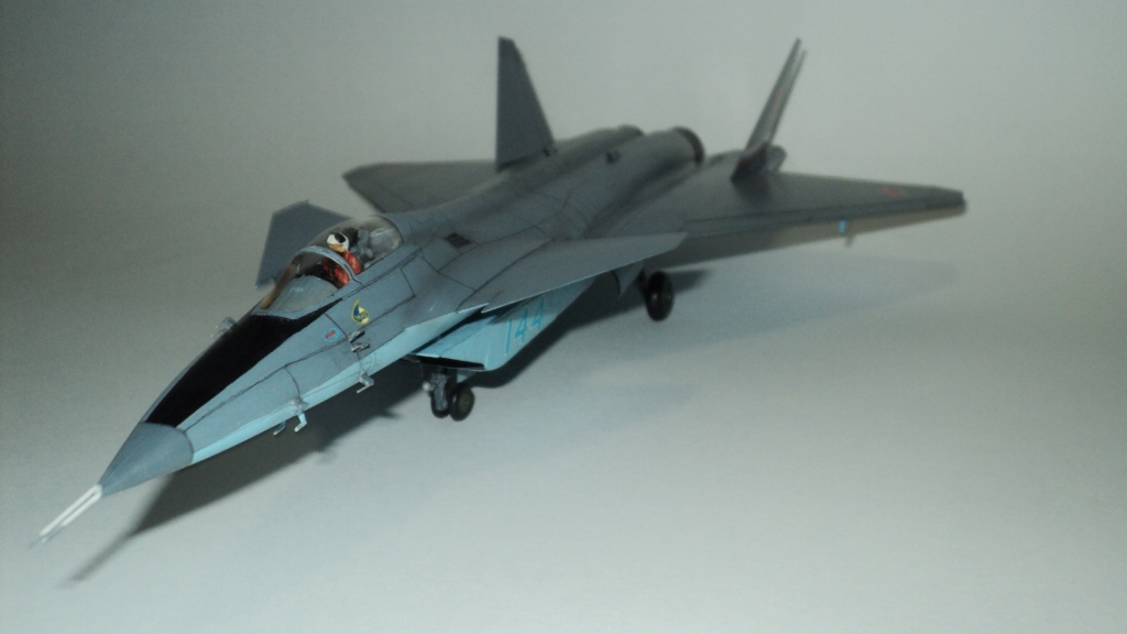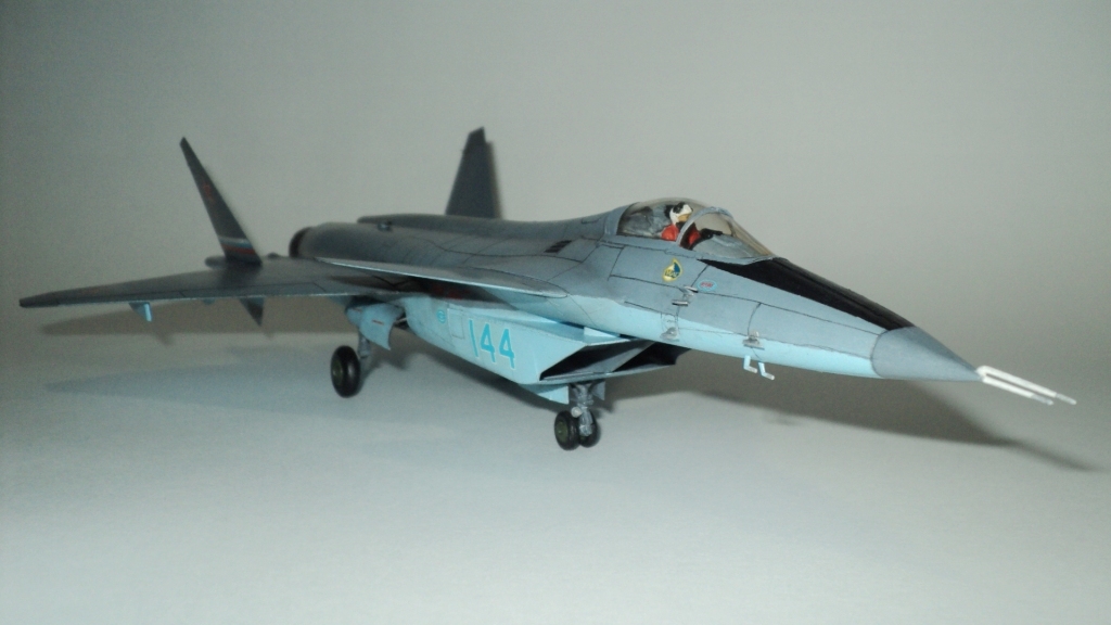 Здравствуйте! Предлагаю Вашему вниманию самолет МФИ КБ МиГ. Набор купил больше 6 лет назад. В те далекие времена швы не шпаклевал и не зачищал их потом, так же не перерезал расшивку. По сему модель не галерейная. Куда порекомендуете, туда уберу. Красил - акрил "Звезда", кистью, сверху акриловый, матовый лак. Модель делалась "изкаробки". Доработок минимум. В нишах шасси, на створках люков -домкраты, присутствуют так же стекатели стат. электричества на плоскостях. Расшивку выделял простым карандашом, где была. В цвет, по моему, не попал, на фото другие оттенки у реального самолета. Ну вот и все.