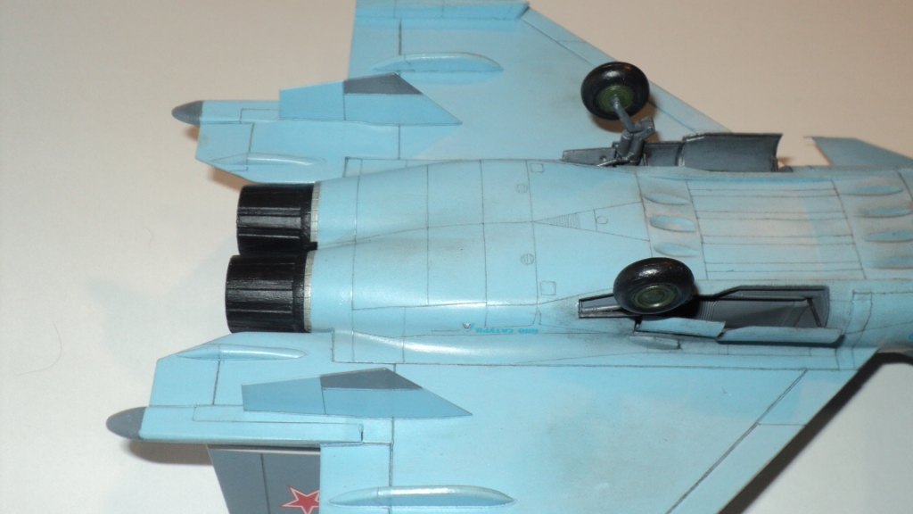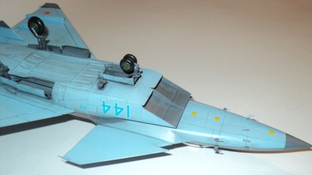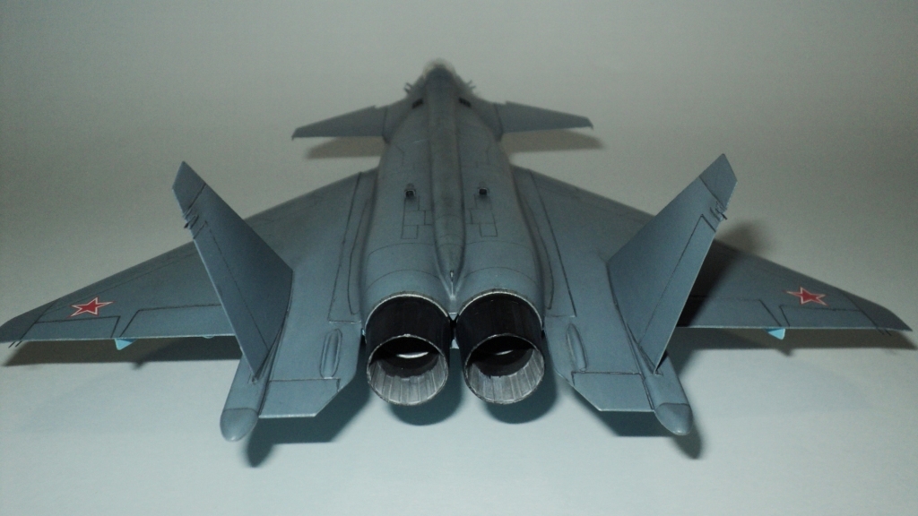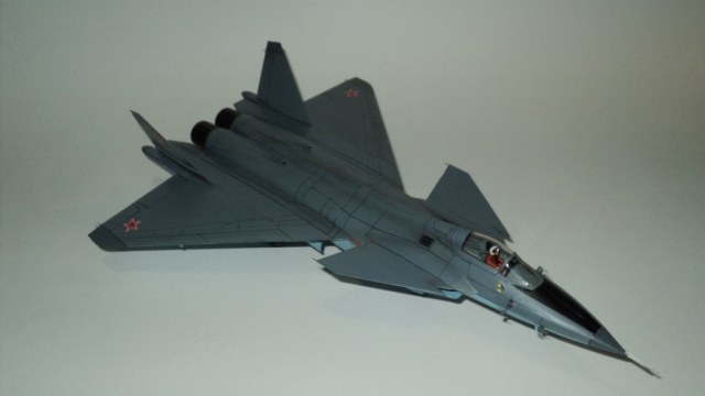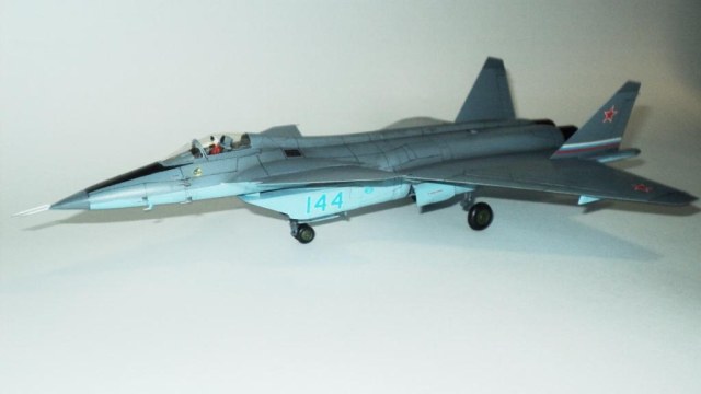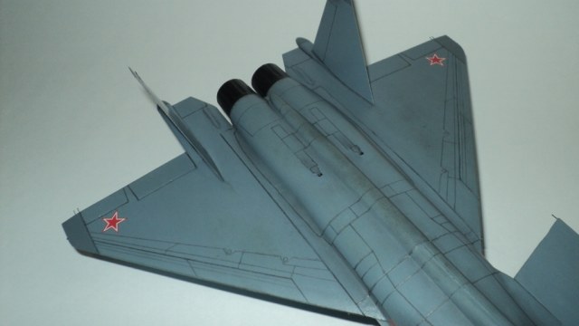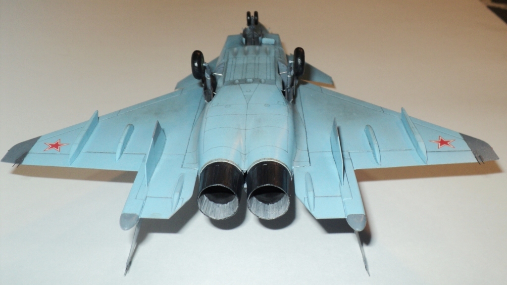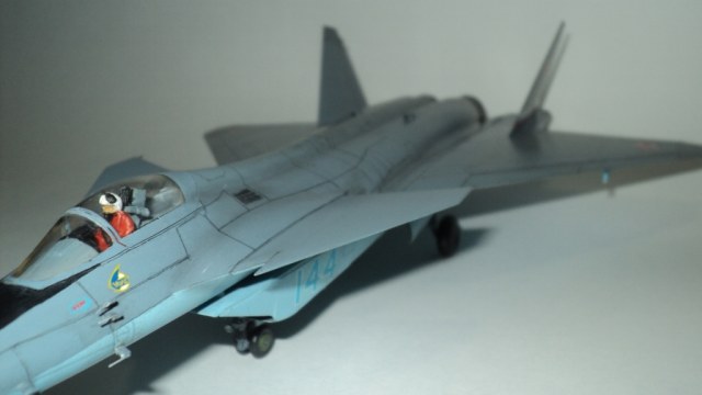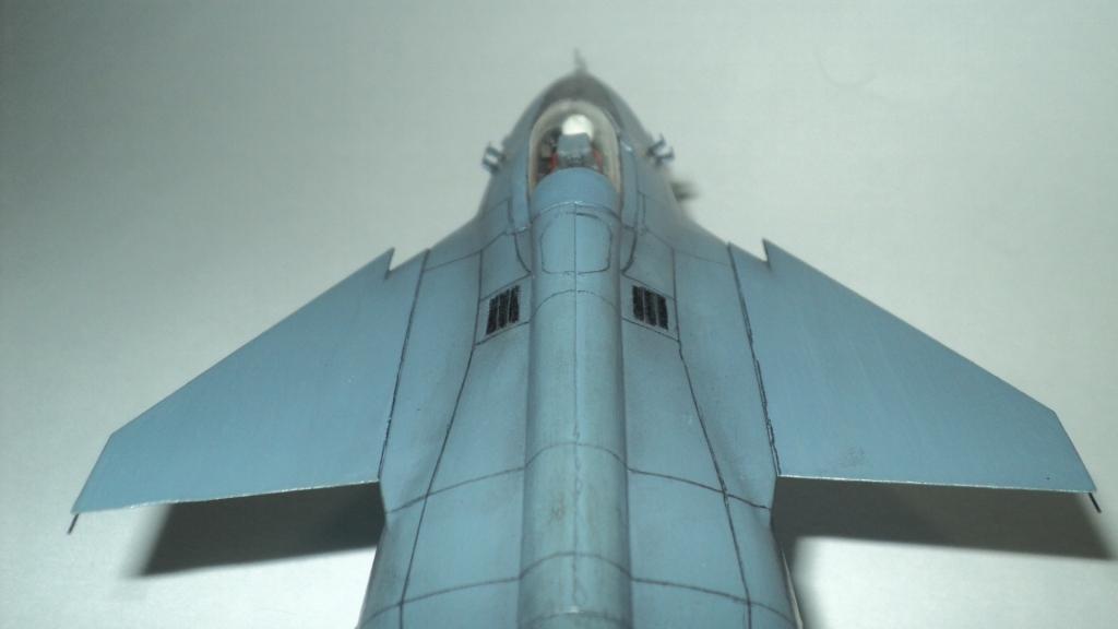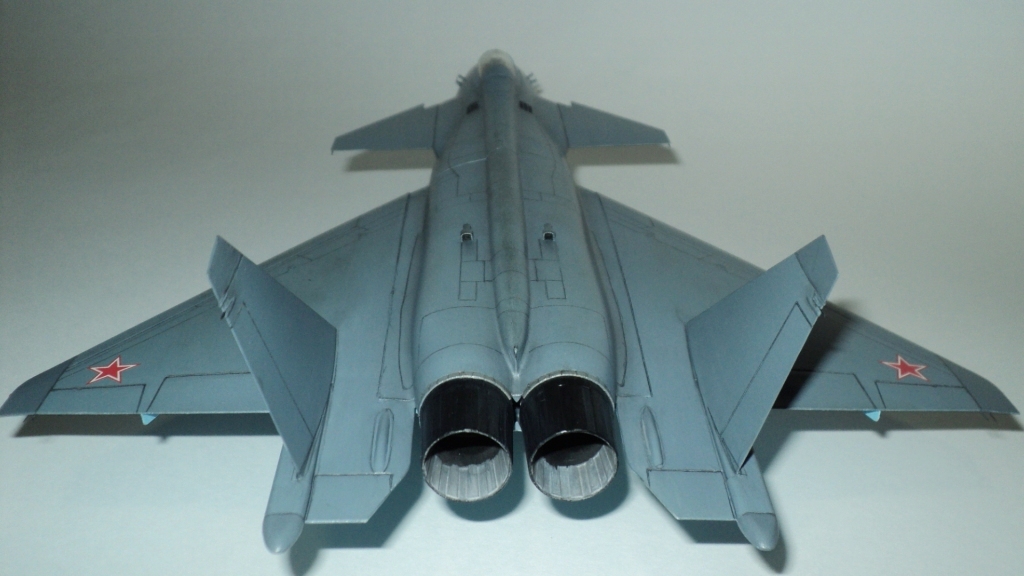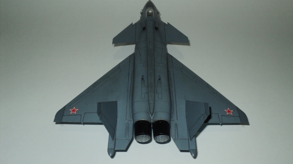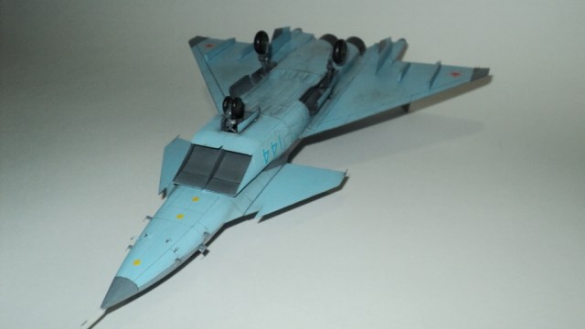 Здравствуйте! Предлагаю Вашему вниманию самолет МФИ КБ МиГ. Набор купил больше 6 лет назад. В те далекие времена швы не шпаклевал и не зачищал их потом, так же не перерезал расшивку. По сему модель не галерейная. Куда порекомендуете, туда уберу. Красил - акрил "Звезда", кистью, сверху акриловый, матовый лак. Модель делалась "изкаробки". Доработок минимум. В нишах шасси, на створках люков -домкраты, присутствуют так же стекатели стат. электричества на плоскостях. Расшивку выделял простым карандашом, где была. В цвет, по моему, не попал, на фото другие оттенки у реального самолета. Ну вот и все.