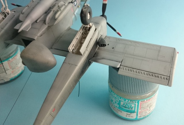 Модель хороша, доработок масса, и при этом торчащие в разные стороны пулеметы портят всю картину. Равно как и неровности в окраске, а заодно и непонятно зачем открытый хвостовой отсек. Никакой в нем логики, в отличии от выпущенных закрылков - вот они как раз очень даже уместны.