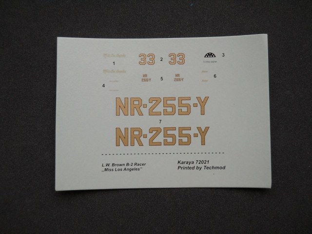 Модель из смолы от фирмы Karaya в масштабе 1/72 (номер по каталогу 72021) упакована в картонную коробку с верхним открытием. Качество литья хорошее, довольно обильная деталировка с неплохой проработкой интерьера и наружных поверхностей модели. Приятным «бонусом» является двигатель. Ваку-козырёк кабины придётся изготовить самостоятельно. Декали смотрятся хорошо. Инструкция вполне наглядна и информативна.