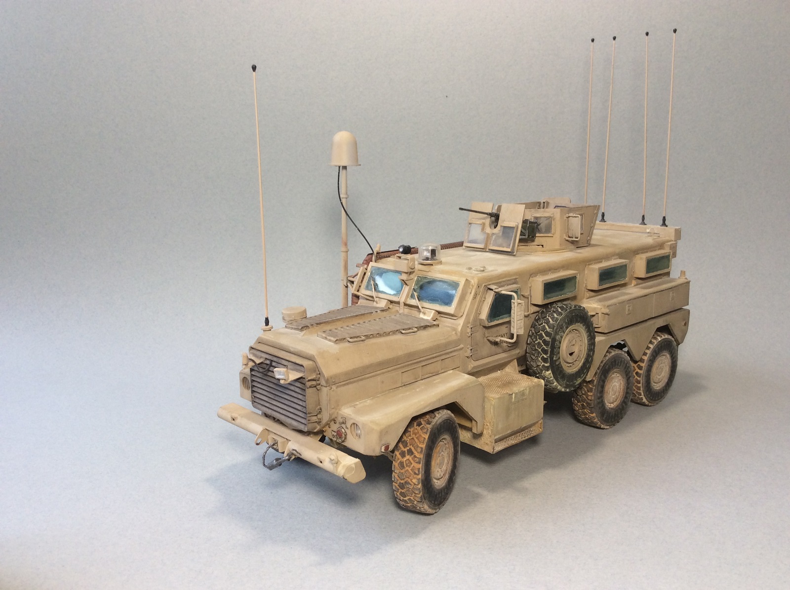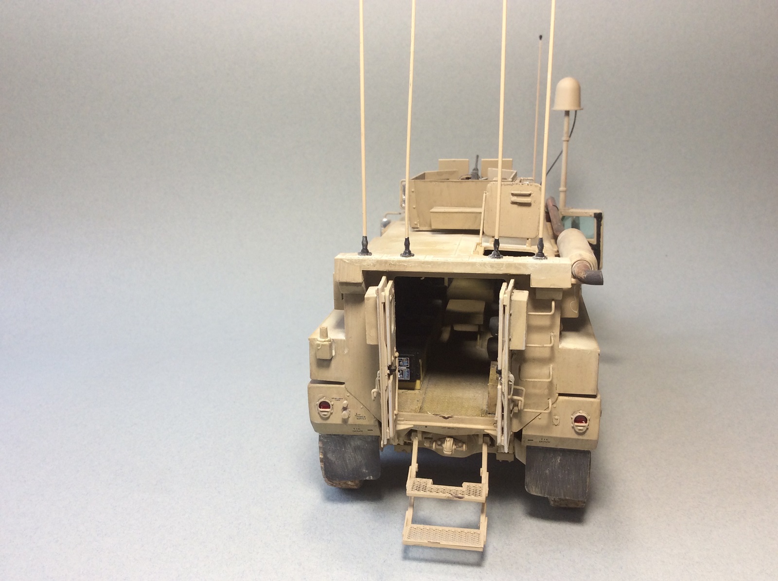 Модель понравилась, но вы повторили мою ошибку. Коническая антенна (ECM) и две цилиндрических (Duke) сзади - это глушилки сотовых, т.н. cell jammer. Поэтому на машине может быть что-то одно, иначе дублирующие устройства. Посмотрите на мой М1114 в галерее. Та же ошибка, хорошо подсказали. А китайцам матчасть не нужна, нужны деньги.