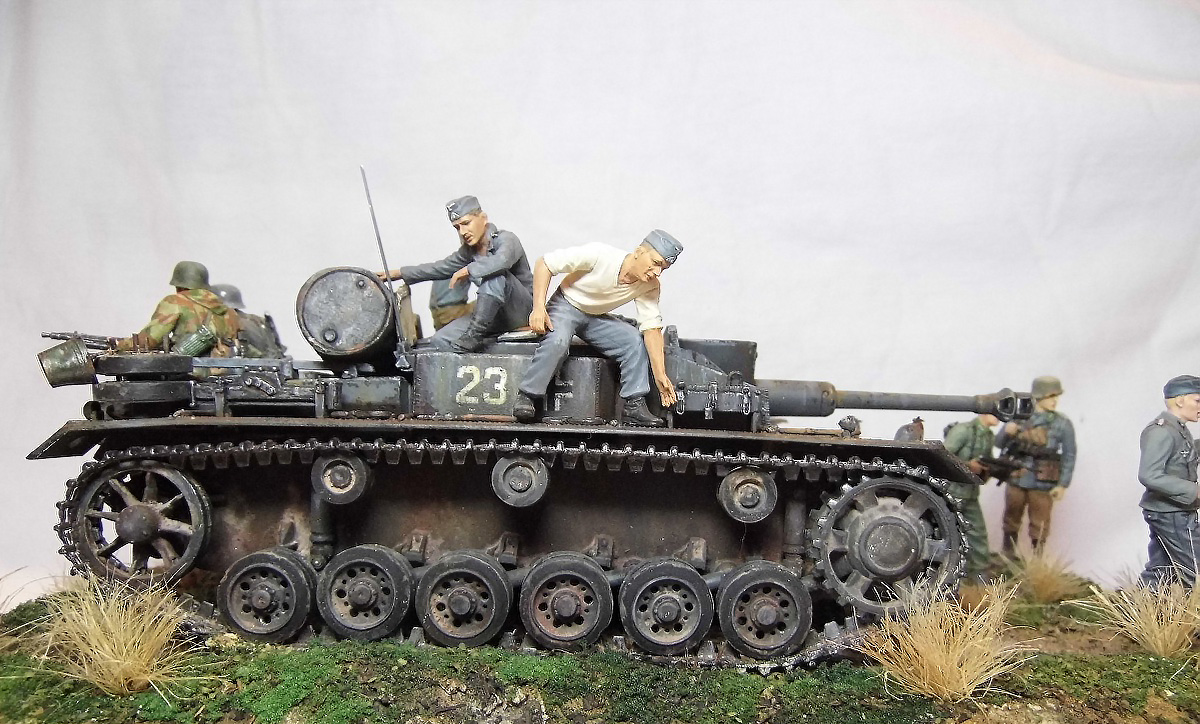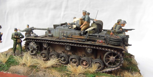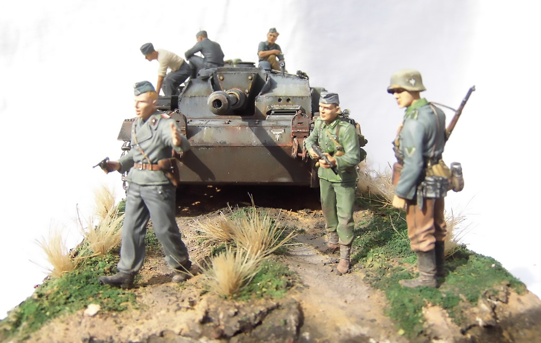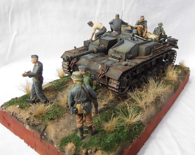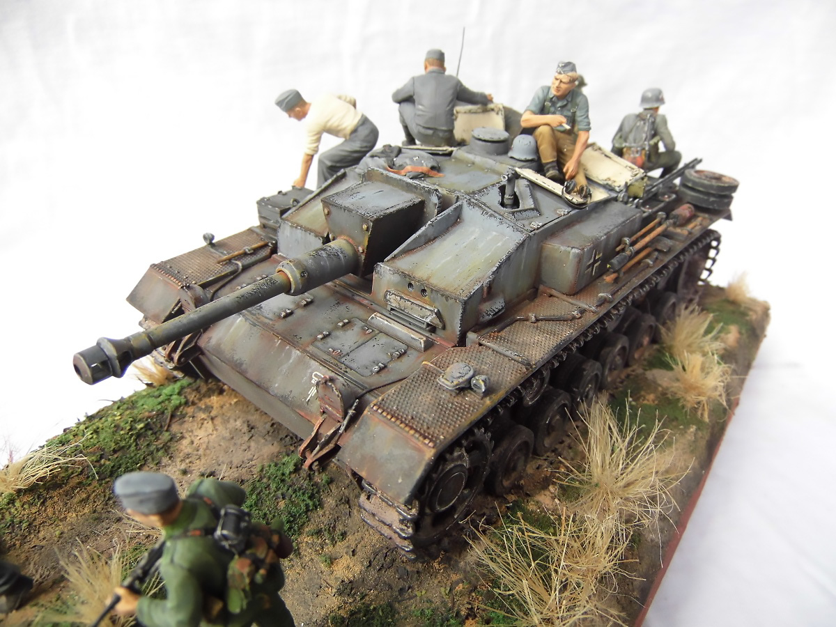 Диорама смотрится очень здорово! Отличные покраска Штуга и роспись фигур.