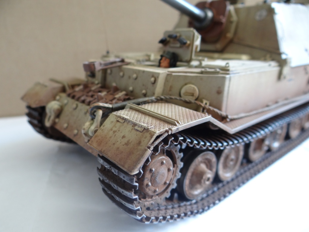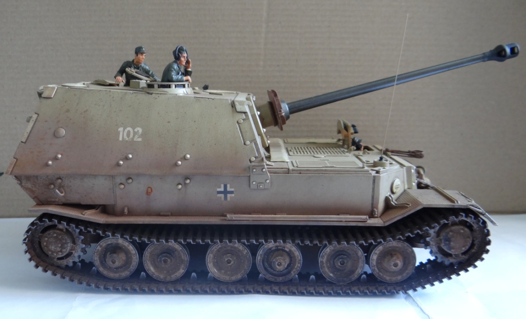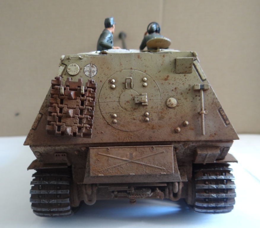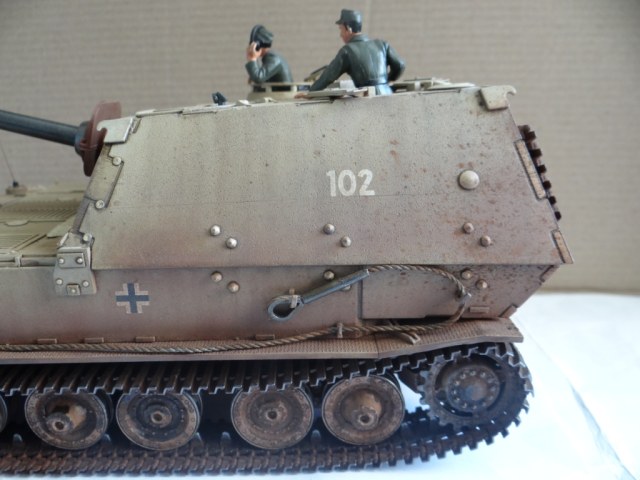 Приветствую Вас уважаемые Каропчане. Представляю на Ваш суд ещё одну работу фирмы Tamiya - Elefant. Модель собиралась без каких-либо трудностей, стыкуемость идеальная. Немного пришлось помучиться с гусями, сильно зависали над катками, а в остальном всё прошло очень здорово. Модель собрана полностью из коробки, единственное что добавил, так это антенка. Cросписью пехоты не силён, поэтому экипаж близко не фотал, за это прошу сильно не пинать. Красил акрилом Tamiya, смывка и потёки – АК interaktiv, пигменты MIG и мастер пигмент. Каску одел, готов к табуретной атаке!
