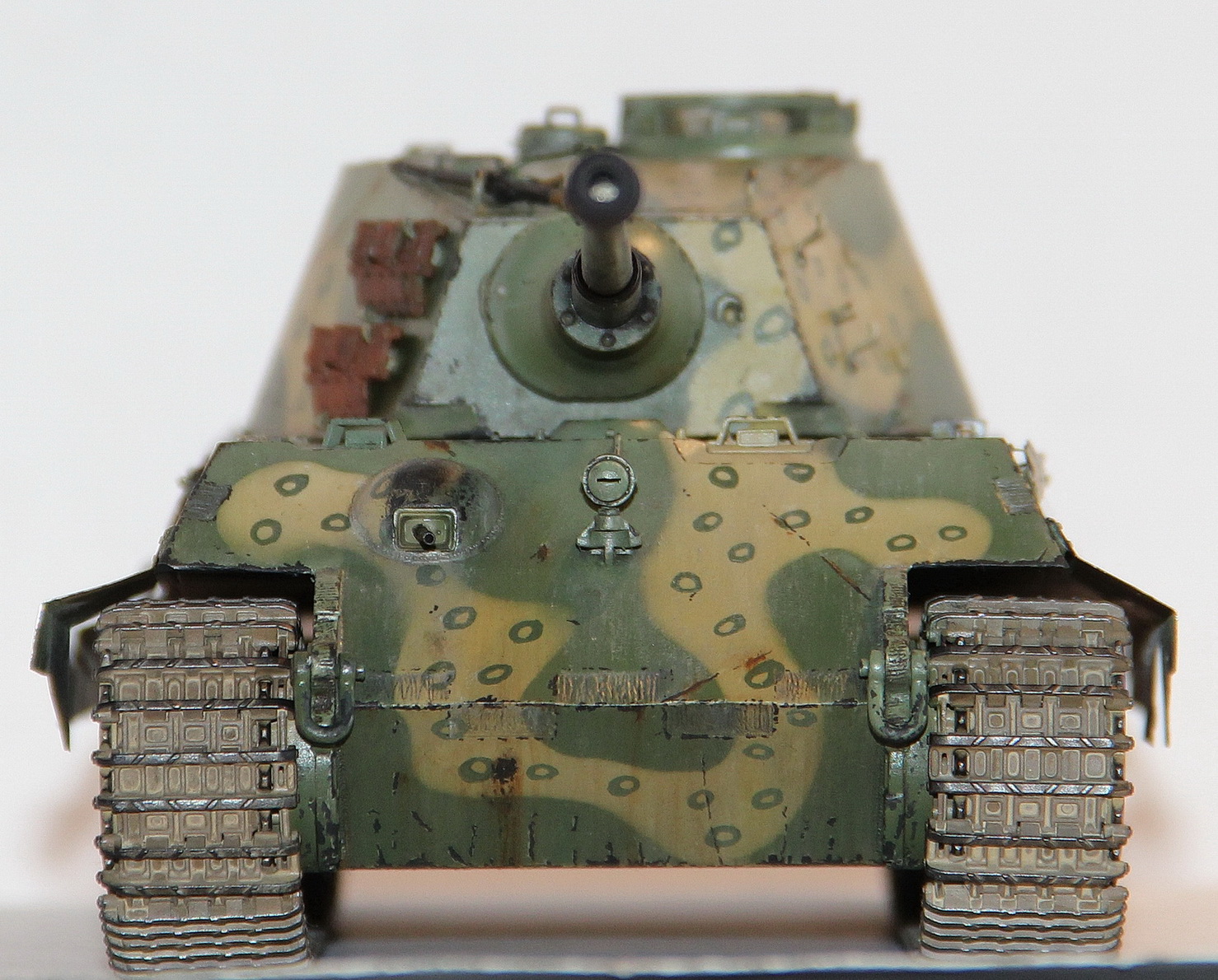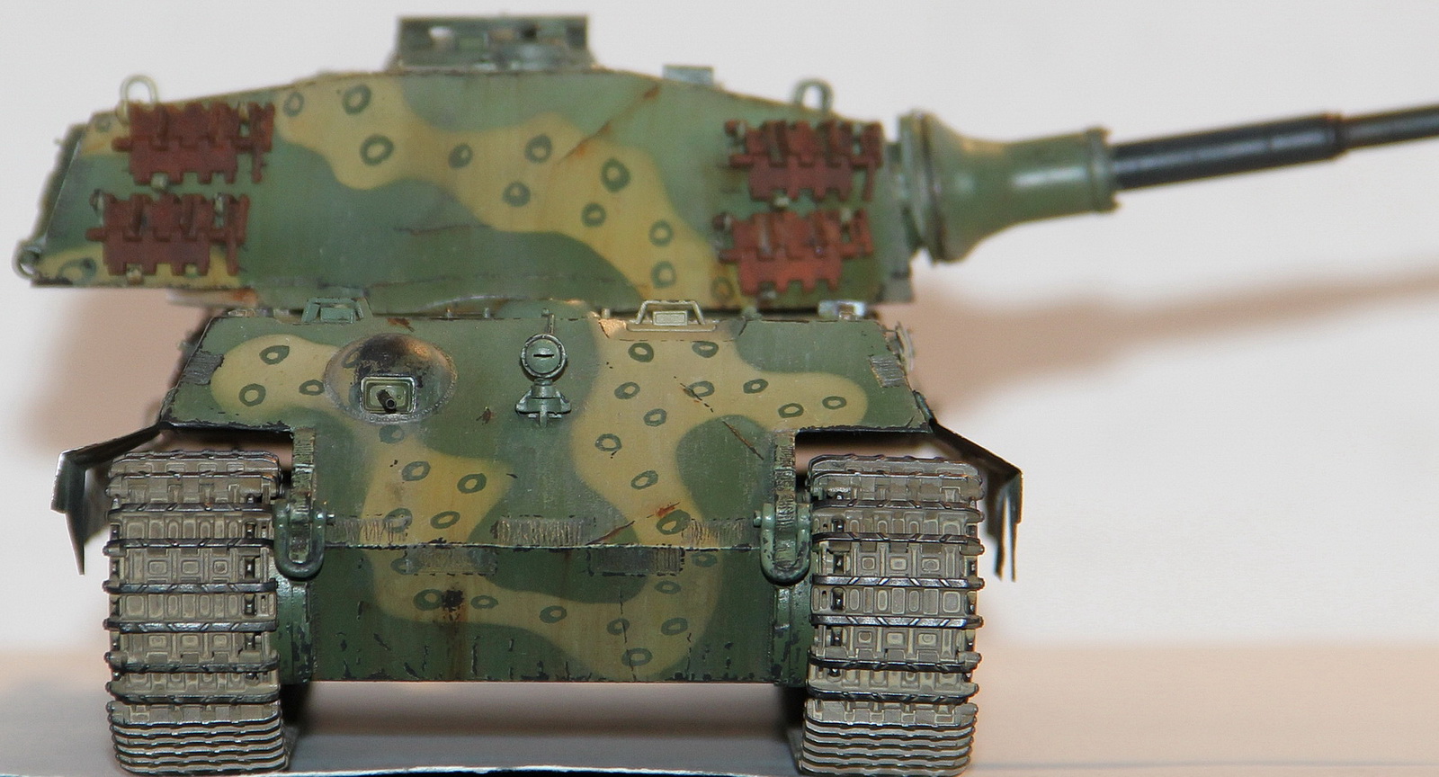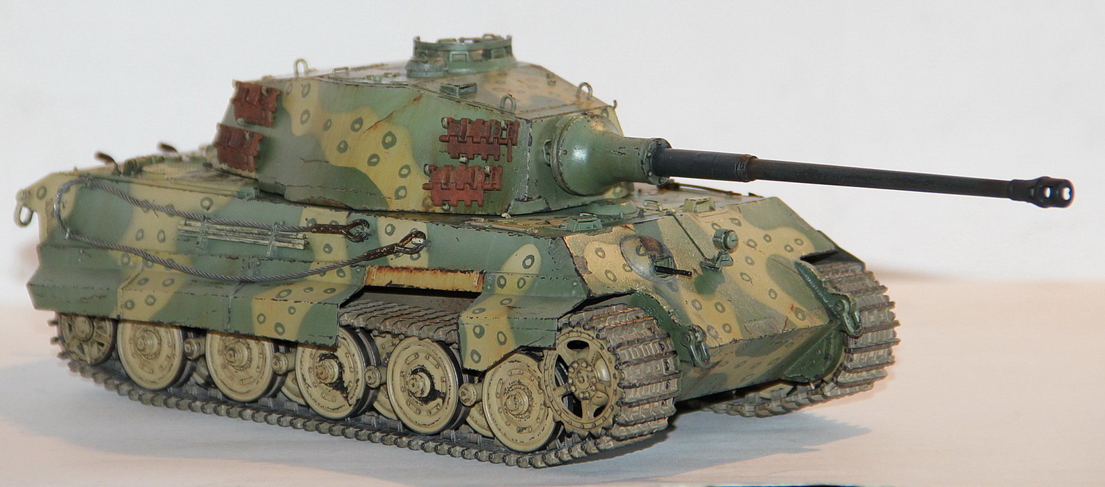 Большое спасибо за замечания! Учту при следующей стройке. За триплексы особенно обидно т.к. они уже готовы и лежат в баночке. Но к сожалению исправить ошибки не получится - модель отдана другу. Ствол был испорчен при смывке(слезла краска), как решение задул в темносерый. А по поводу заниженности, сам только обратил внимание (еще раз спасибо за замечания) скорее всего, что юбка длиннее чем нужно. С чертежами я не сравнивал а попросту скопировал с родных изкоробочных.