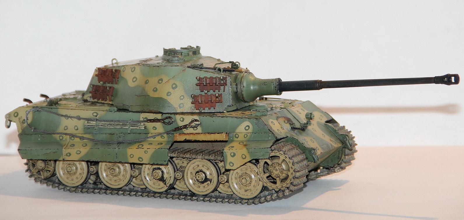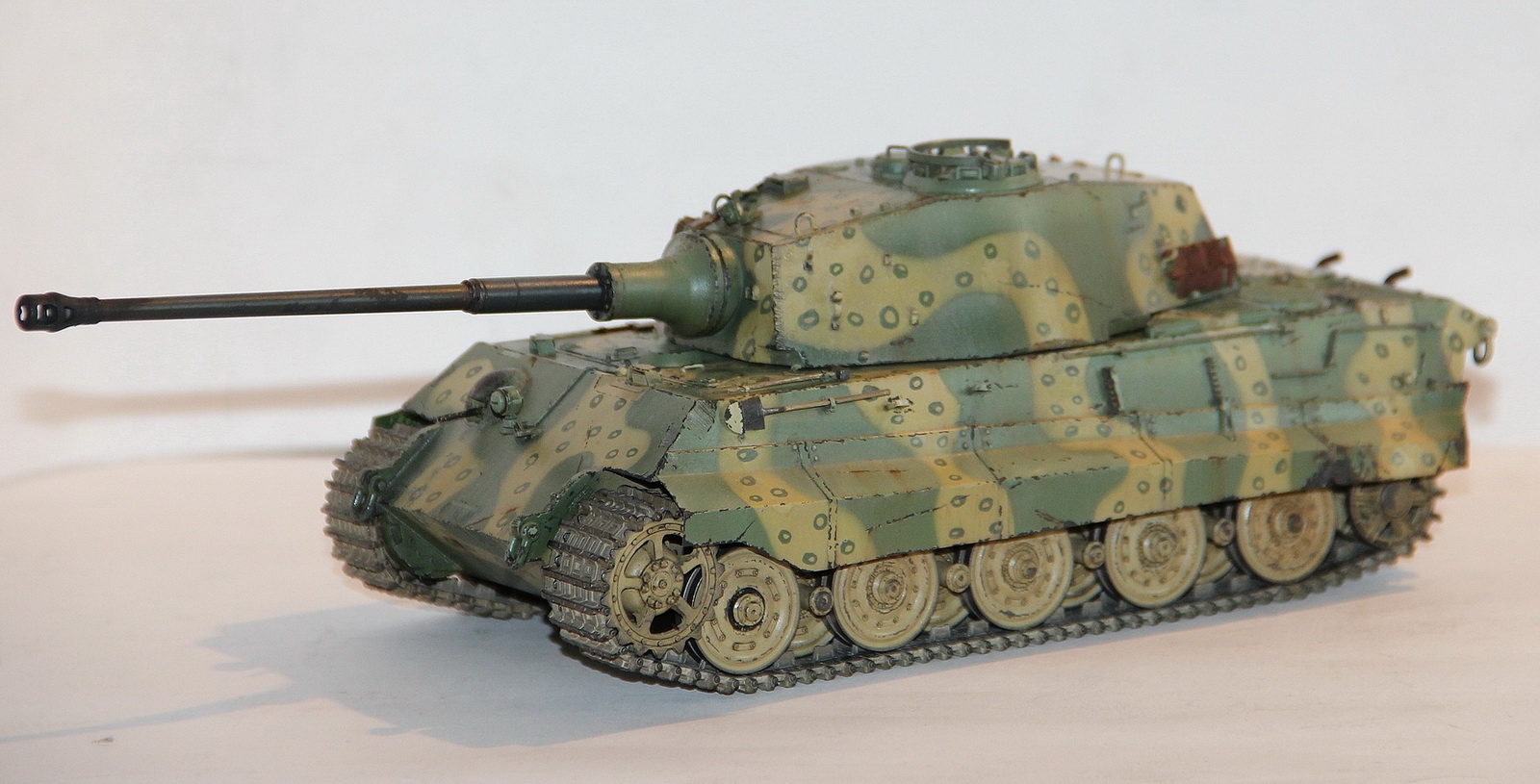 Здравствуйте коллеги! Когда то в детстве собирал танки и вот снова решил этим заняться. Первая за десять лет модель) Собиралась примерно год! В процессе пытался научиться всем премудростям современного моделизма, посему в какой то мере это "кошка". Сама модель довольно хорошего качества, собиралась на ура: стыкуемость деталей отличная, хотя немного пришлось поработать шпатлевкой и наждаком. Облоя практически нету. Камо по схемам из интернета.
