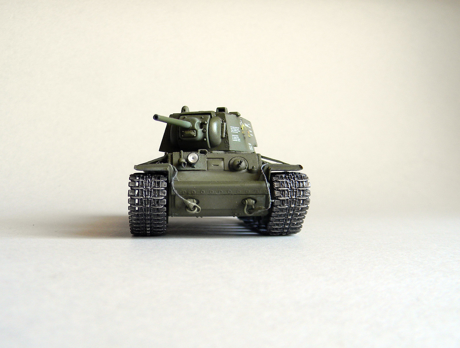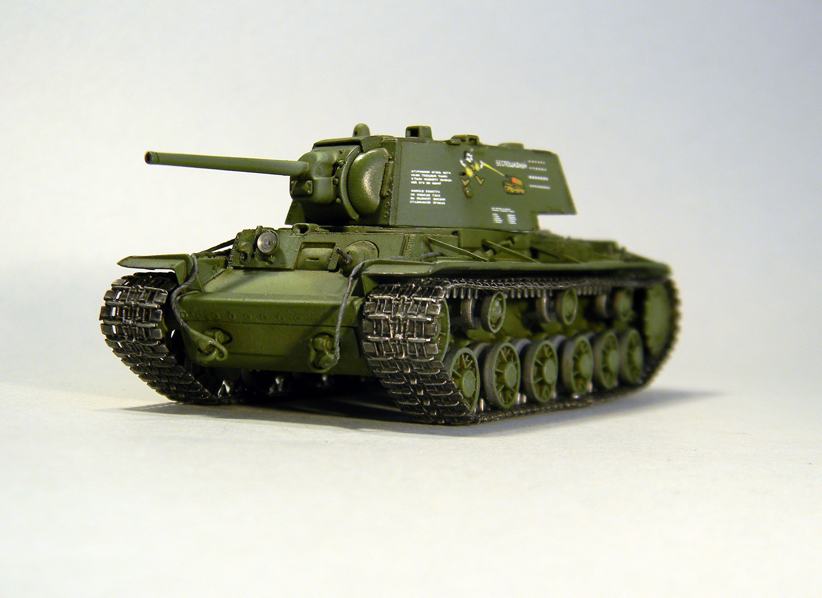 В прочем недостатков у модели реально куча, начиная отсутствием даже намека на стыки листов брони(цельно-литой КВ?), заканчивая ужастными сетками на МТО, жуткими косынками на надгусеничных полках и отвратными гусеницами.