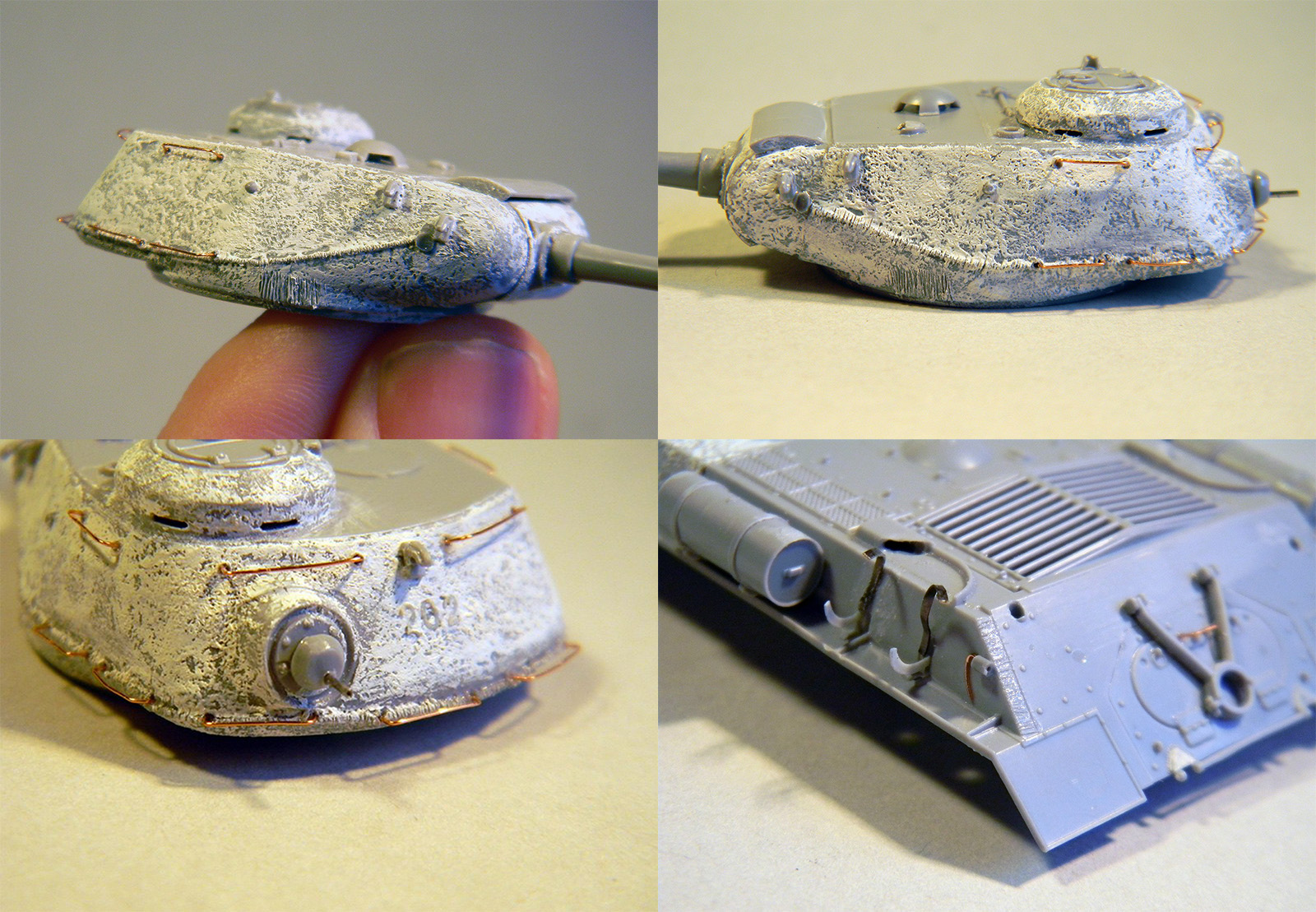 1. На башне, лбе корпуса и подбашенной коробке имитирована фактура литья.