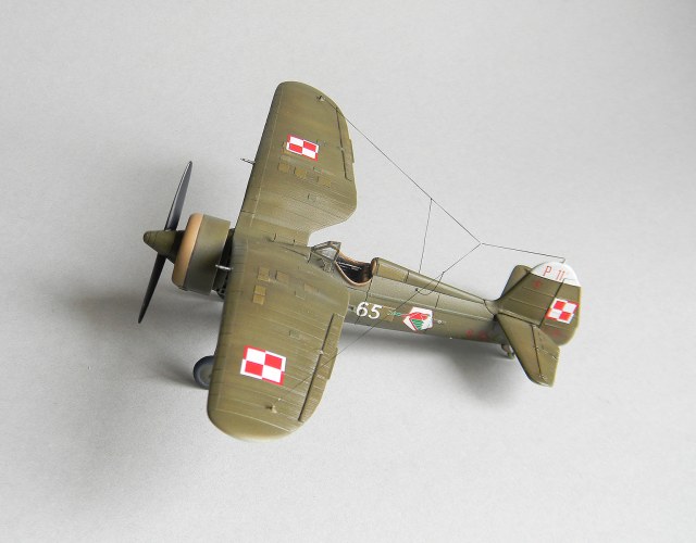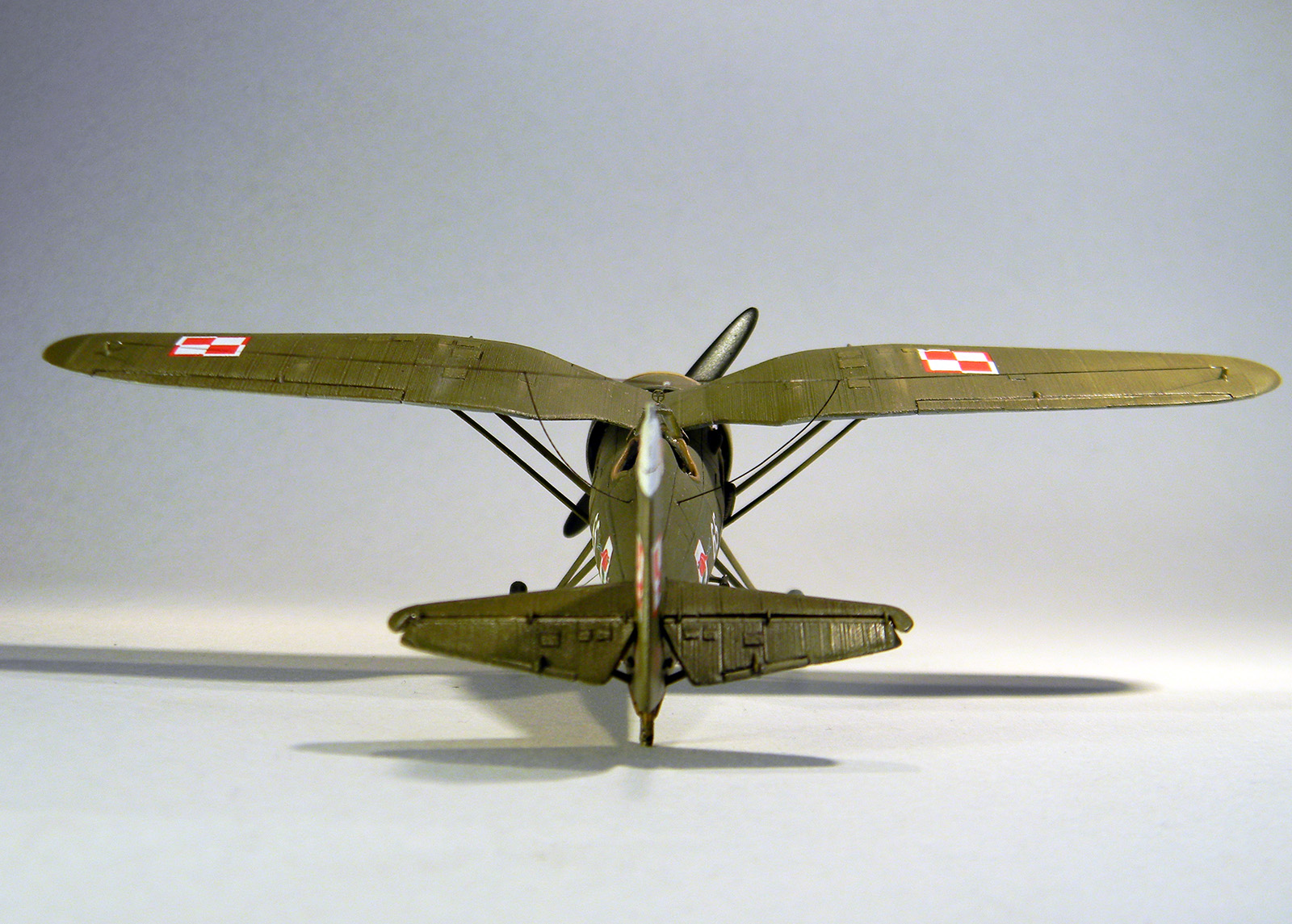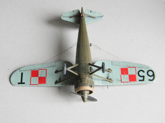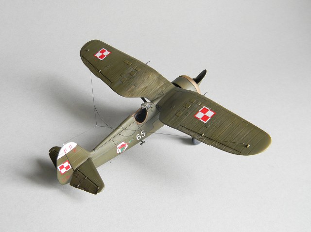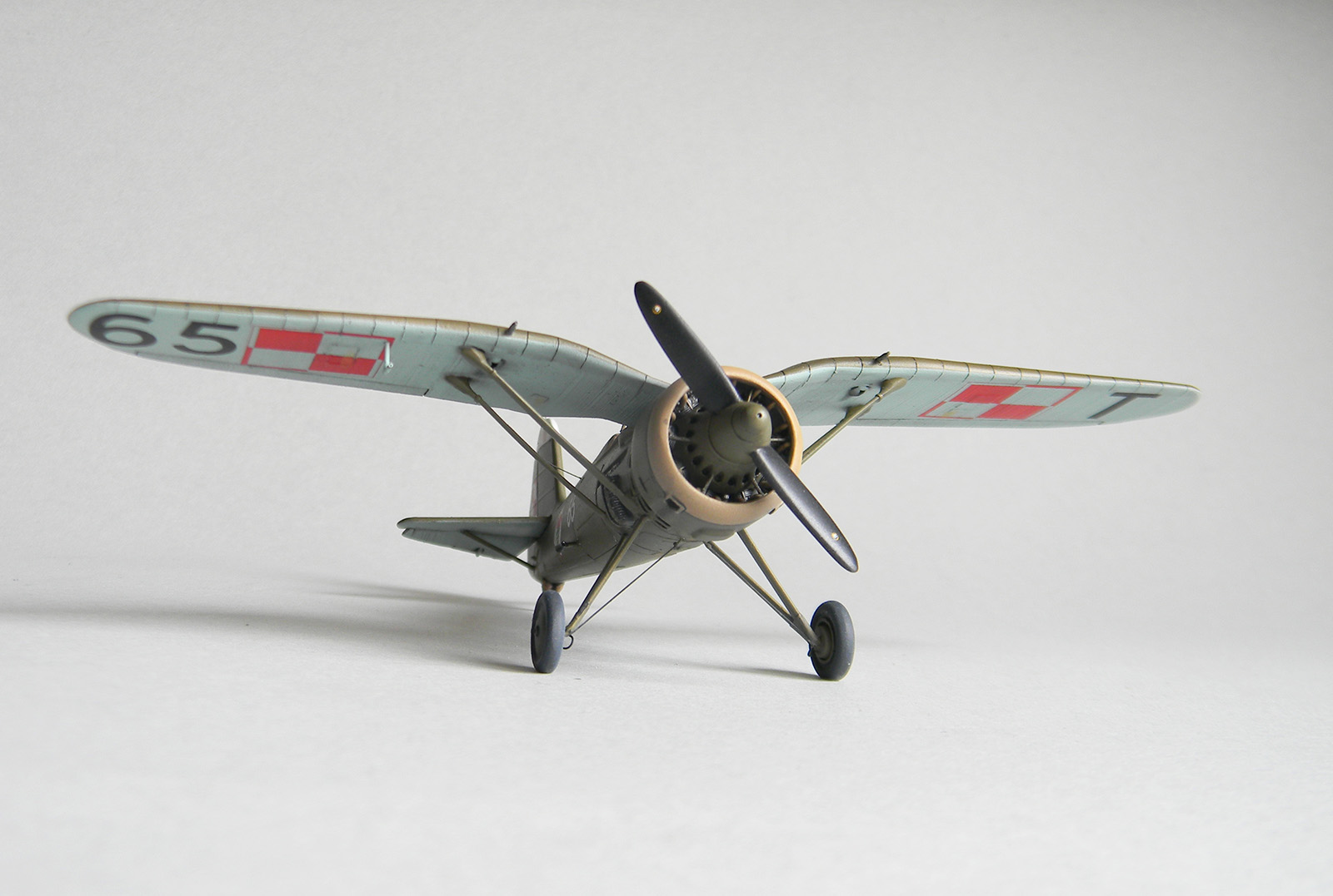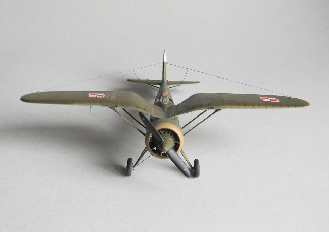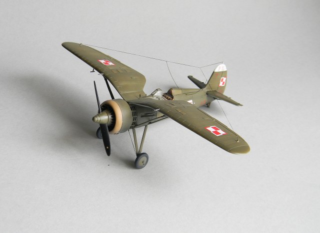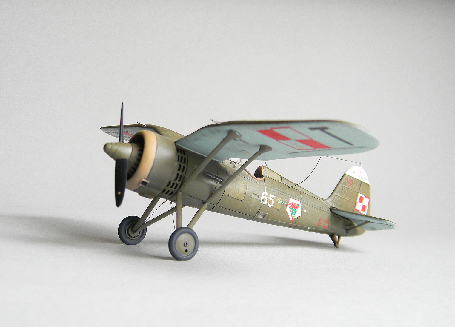Так же, по согласованию с заказчиком я пошел на отступление от исторической достоверности и установил на самолет антенну,которой не видно на фото. В прочем, по воспоминаниям польских ветеранов пред войной на машины массово ставили радиостанции.