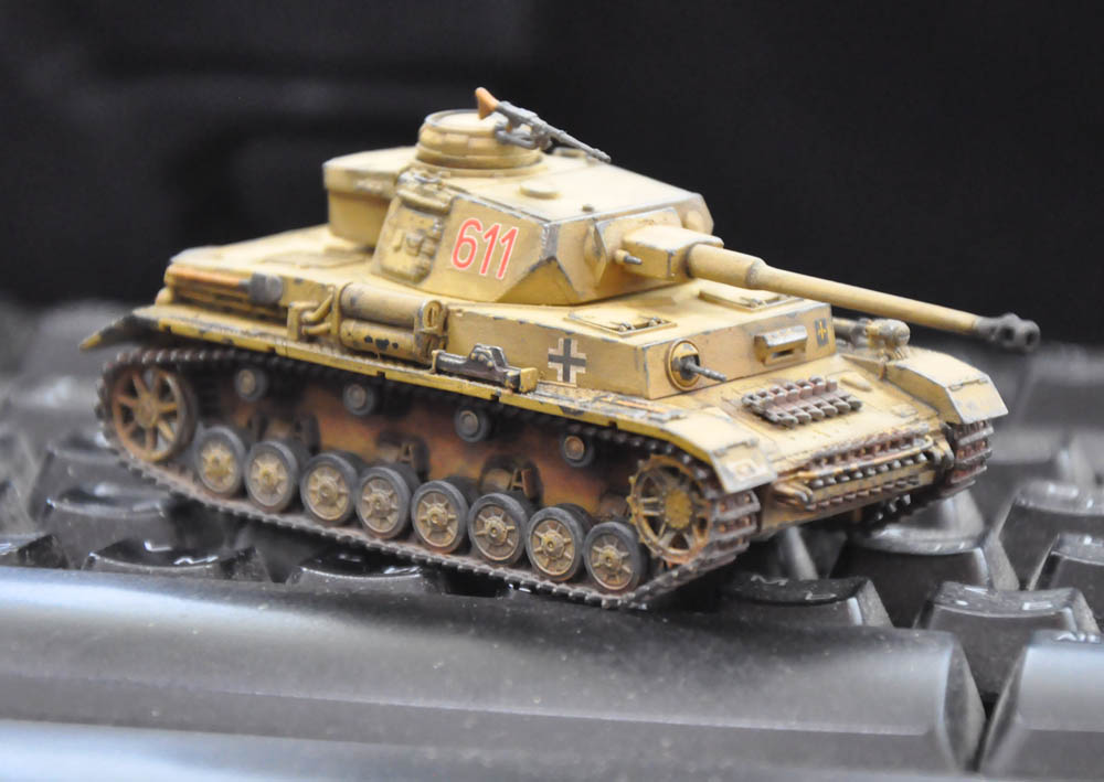 Всех риветствую, вот Pz.Kpfw. IV Ausf.H, сделал без защитных экранов, несколько дополнений по мелочам: поручни на башне, стопсигнал, кабель питания передней фары, планки крепления гусенницы спереди... Окраска Тамия акрил, смывка Тамия, подвел мастер пигментом и карандашом.