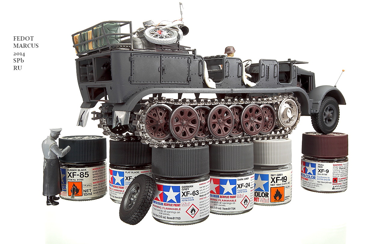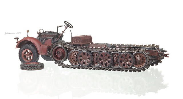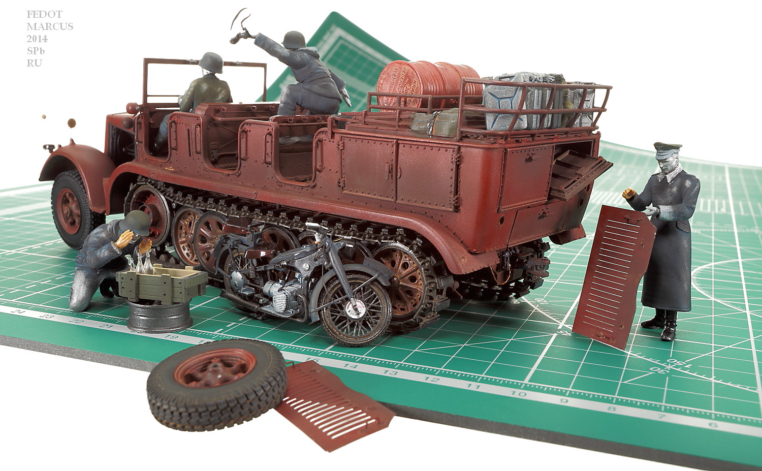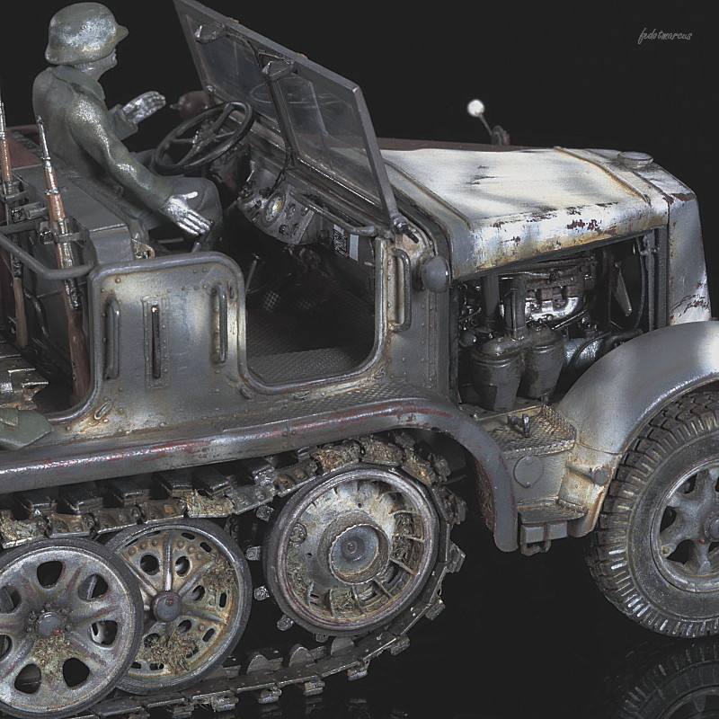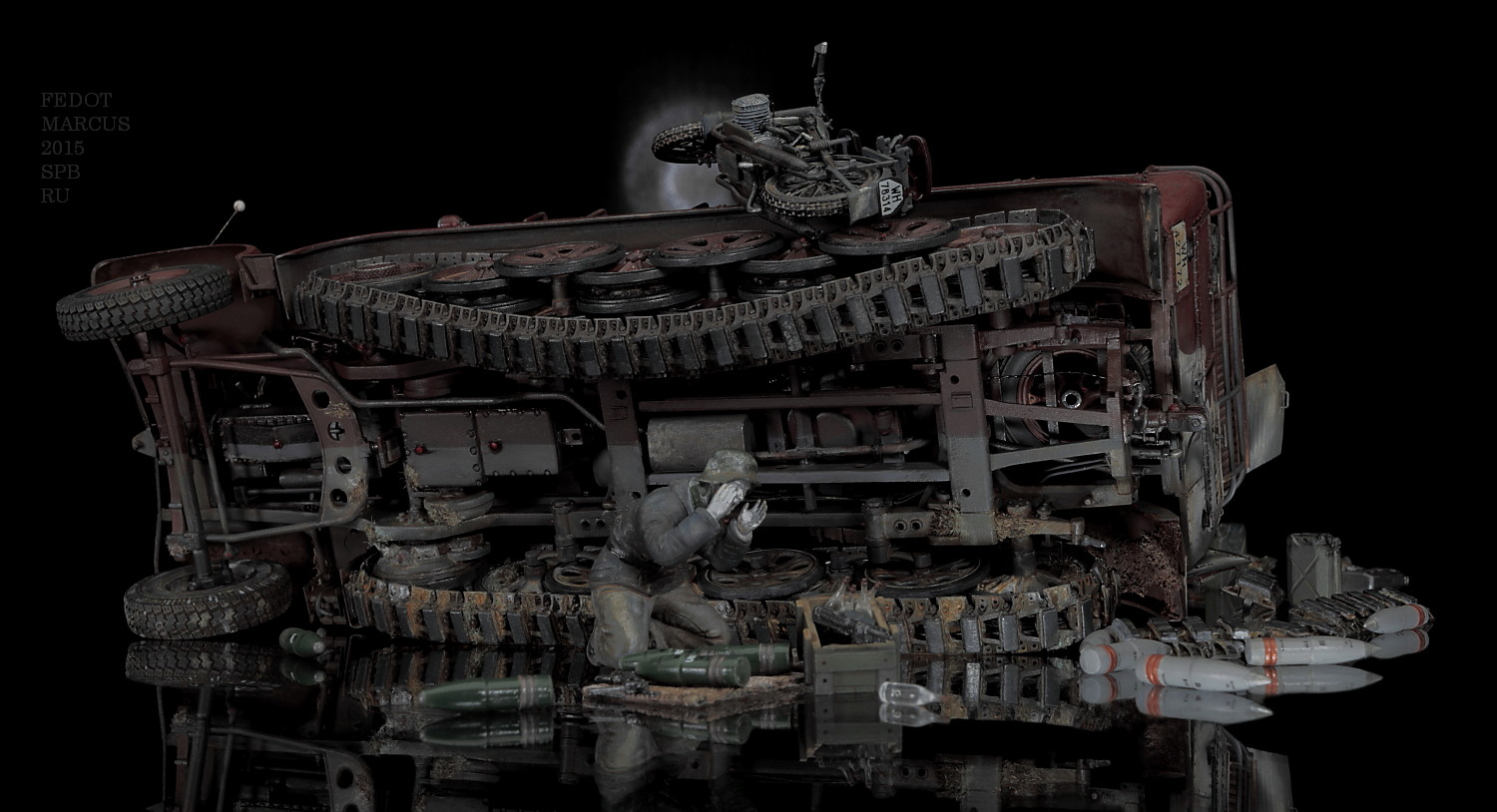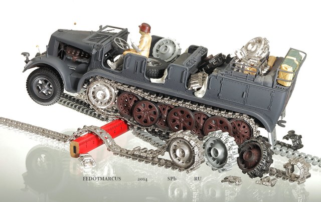 Правда, ещё вот мне не совсем понятно - зачем так подробно воспроизводить полугусеничник, так как он, во-первых, перевёрнут, во-вторых - в составе композиции? Ведь у Вас один только движок наворочен дай боже..