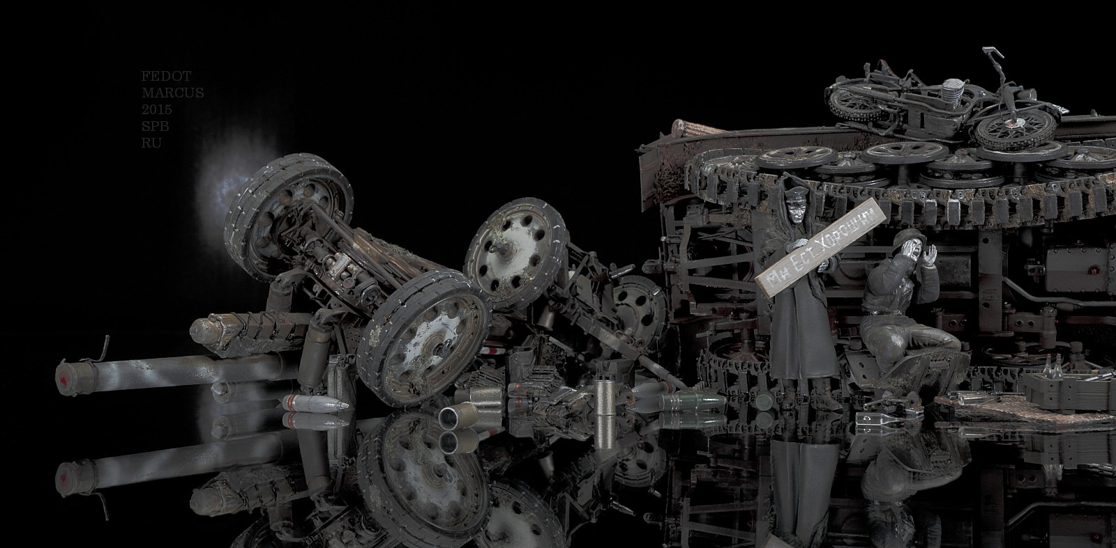 Я вижу в этой работе всю абсурдность, жестокость, циничность и бесчеловечность войны. Композиции очень тонко давит на психику, окутывая какой-то неописуемой тоской и сюрреалистичностью. Мне кажется именно так должен чувствовать себя человек на войне. Он должен постоянно себя спрашивать: что это? Неужели это возможно, пусть это будет всего лишь кошмарный сон.