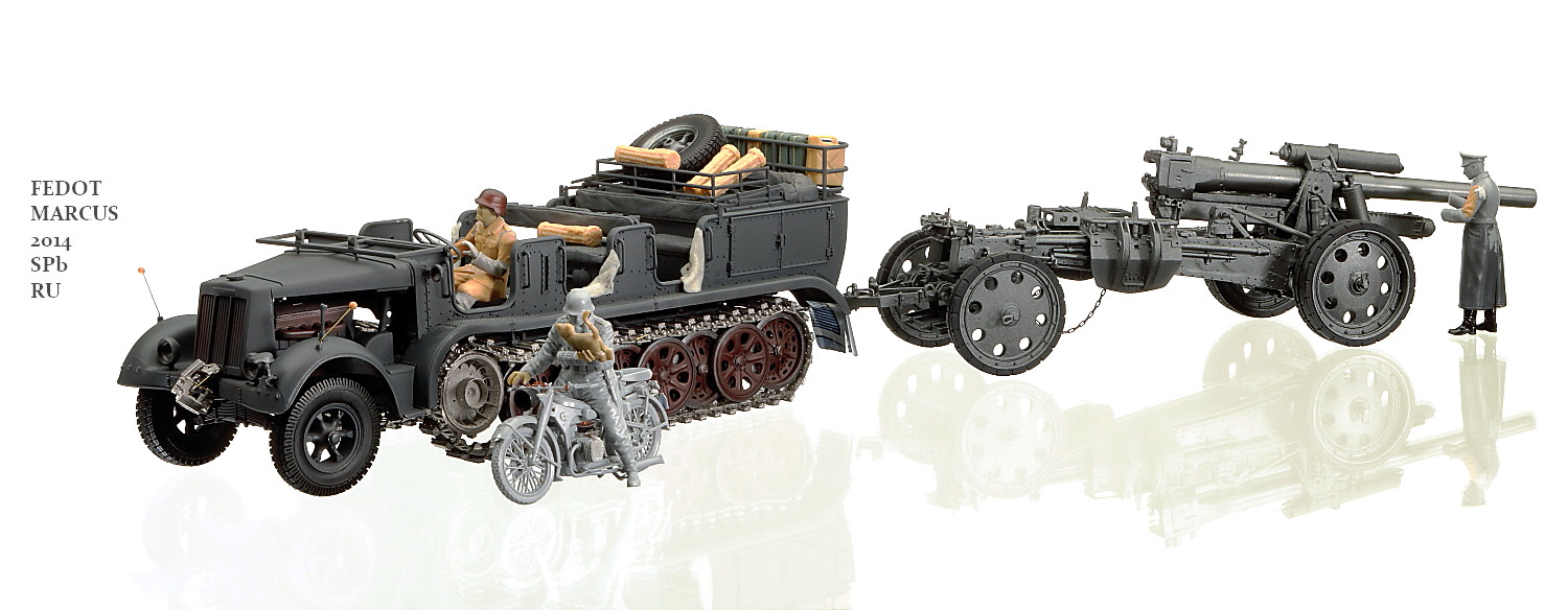 Полугусеничный тягач Sd.Kfz.7 8tEarlyVersion + s.F.H. 18 от Trumpeter;