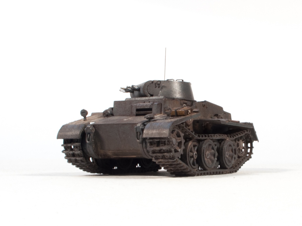 Доработки потребовались минимальные: заделал вставкой и зашпаклевал ошибочно отзеркаленное прямоугольное отверстие на одном травленом крыле, добавил рымы на башню, поручни, ручку и запор с лентой на ящик на левом крыле и заменил пулеметы на точеные от Zedval.