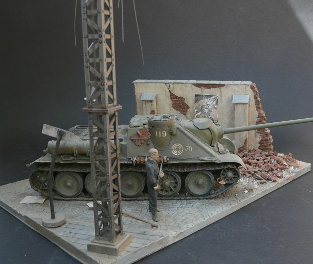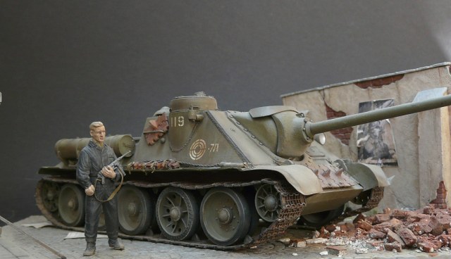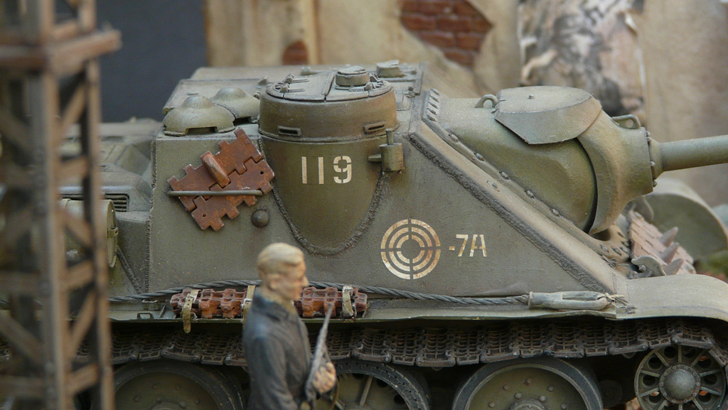 Отличное исполнение. Реально получился кирпичный завал. Фигурка танкиста немного подкачал, ему руки хоть бинтами с имитировать. В остальном великолепно.