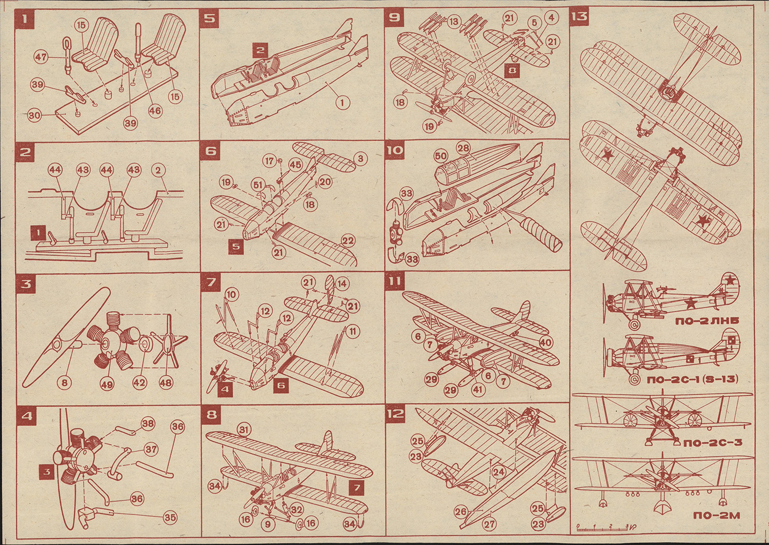 Ностальгический аппарат: в юности собрал таких штук несколько, благо дефицита в секциях игрушек он не представлял. Собирался легко во всех вариантах, кроме С-1, поскольку просто наклеить "горбатый" гаргрот от нее нельзя, надо срезать верх фюзеляжа. А в остальном сборка была легкая и приятная, некоторые навыки нужны были только при сборке бипланной коробки.