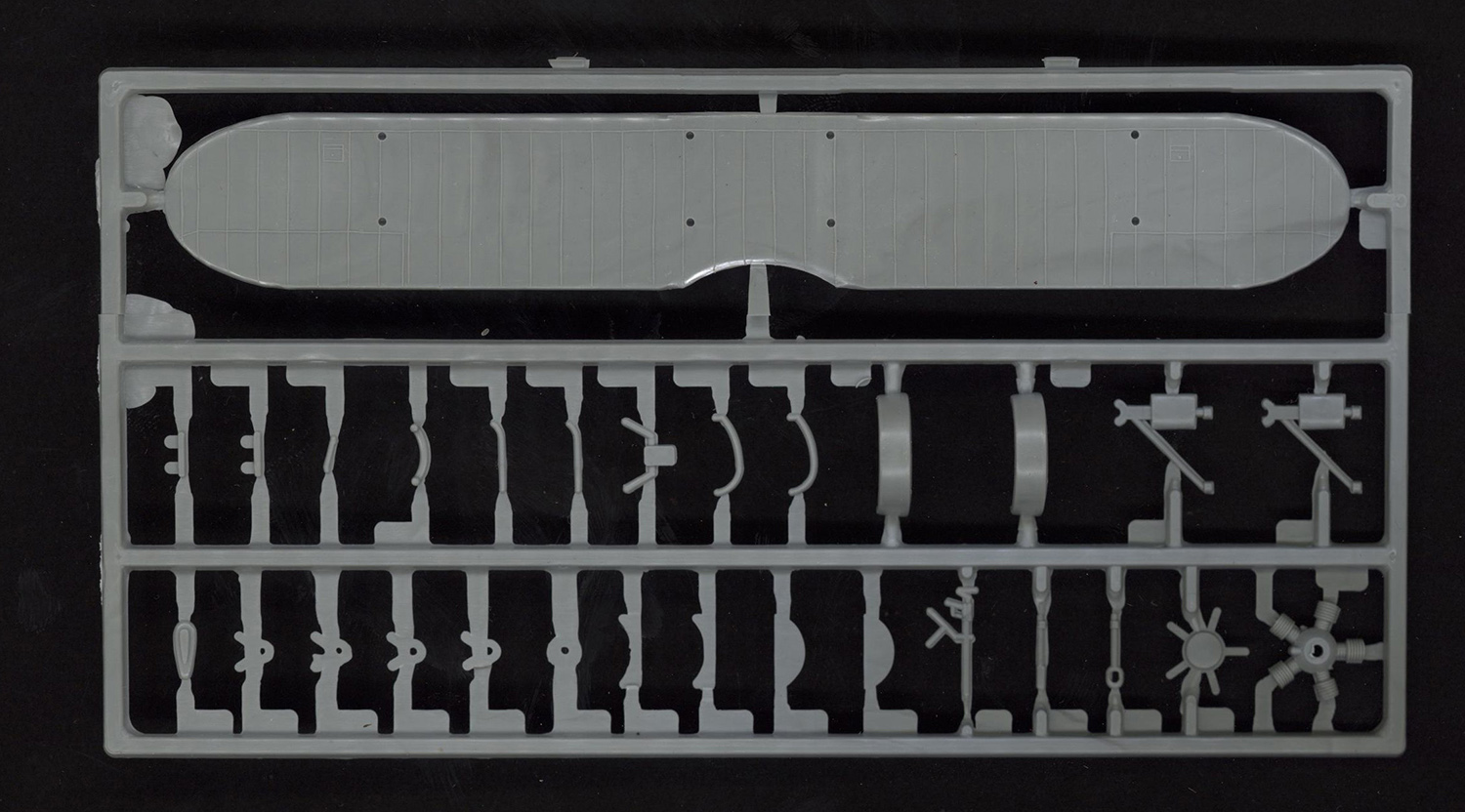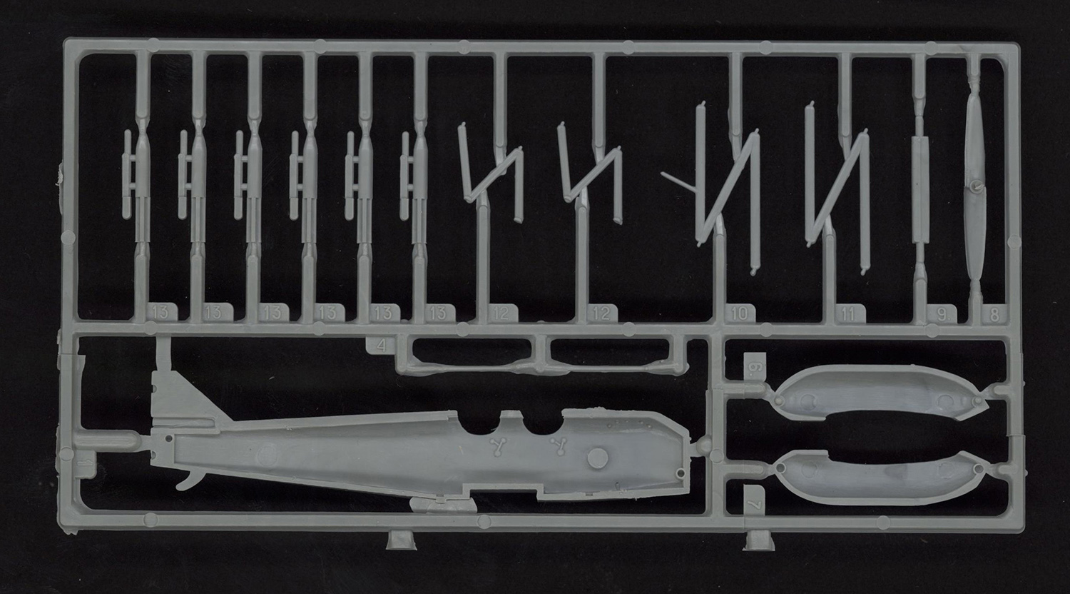 Модель имеет 90 деталей, отлита на мой взгляд хорошо, недоливовы и утяжины кое где встречаются (фото 8). Так же встречаются следы толкателей (фото 10) Присутствует облой, легко удаляемый. Расшивка - очень тонкая, неглубокая, но четкая, много элементов детализации модели