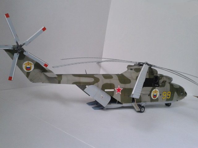 Красивый вертолет, только мне кажется основной фон камо должен быть чуть зеленее. А так очень красиво. именно на этой "корове" (на 99-ой) я неоднократно катался в 90-х....