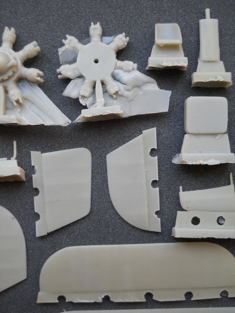 Модель из смолы от фирмы Karaya в масштабе 1/72 (номер по каталогу 72014) упакована в картонную коробку с верхним открытием. Качество литья хорошее, довольно неплохая проработка и богатая деталировка. Отдельно даны все управляющие поверхности. Отлично выполнен двигатель и пулемёты. Декали имеются на два варианта. Есть возможность собрать вариант с коком и без. Козырёк кабины и шкалы на приборную доску даются из плёнки. Неплохим дополнением смотрится небольшая плата фототравления. При такой подробной деталировке, инструкция выглядит недостаточно наглядной и информативной.