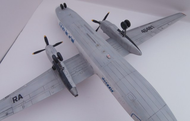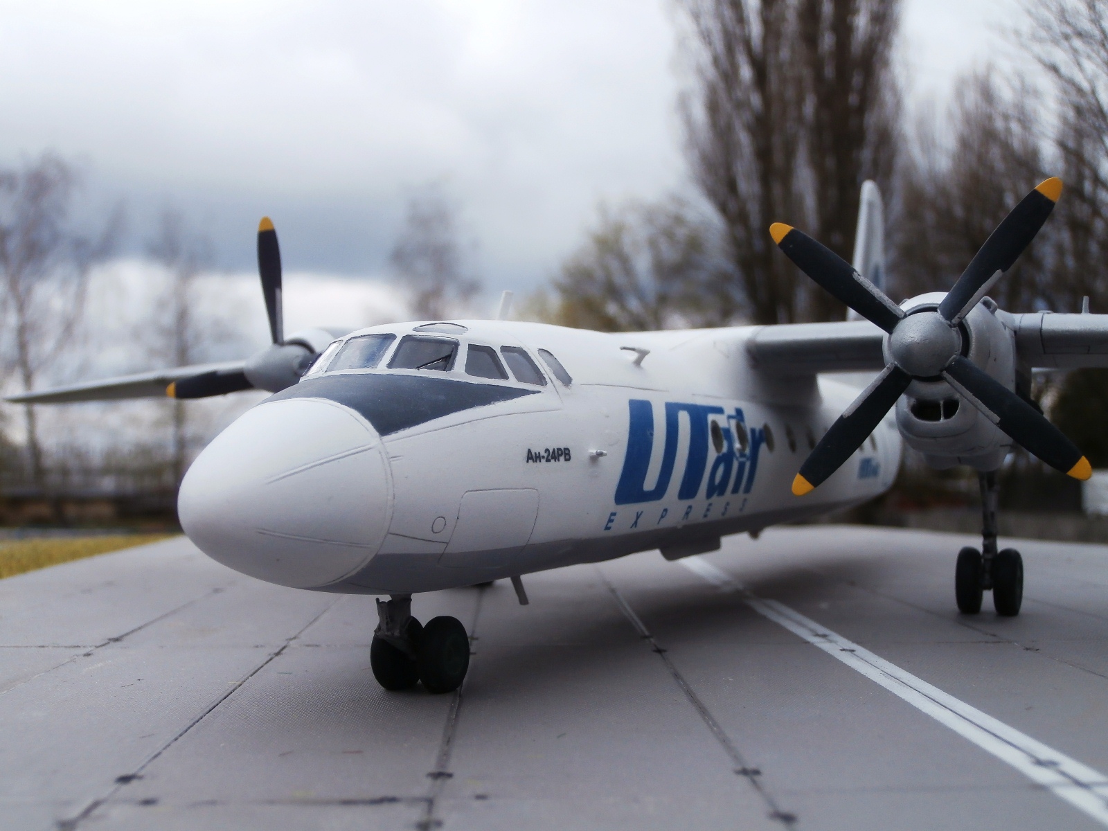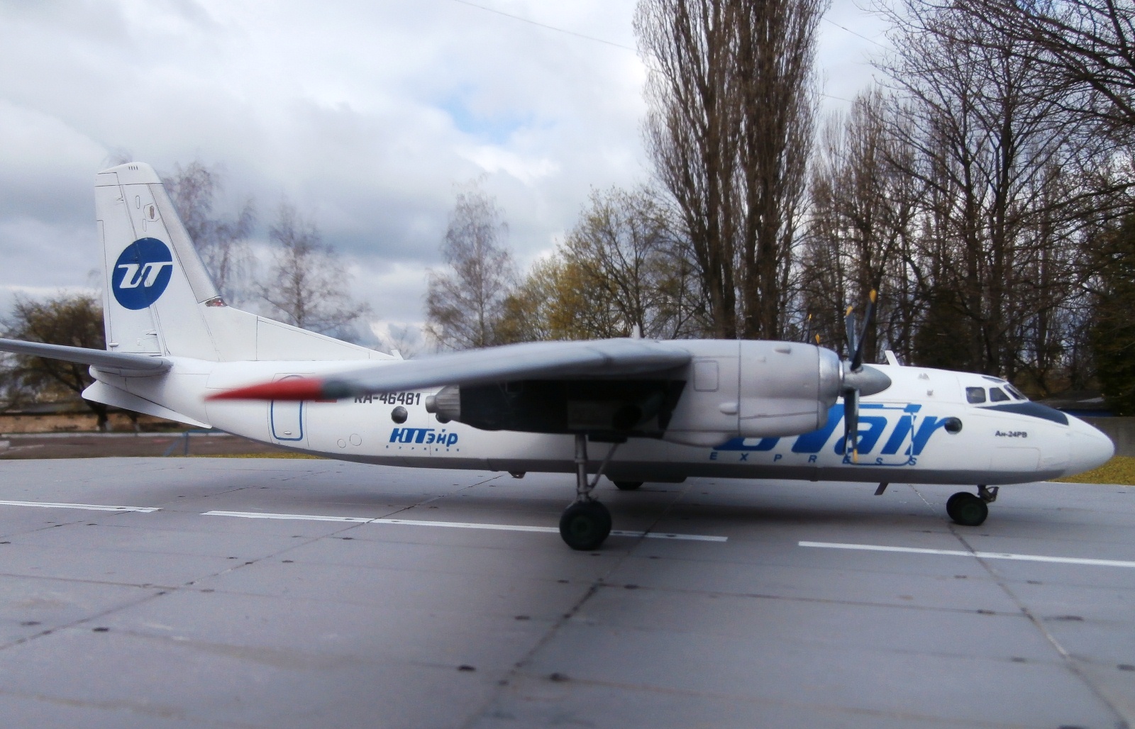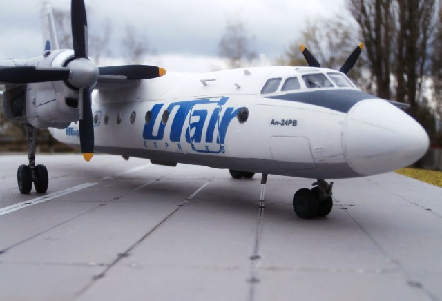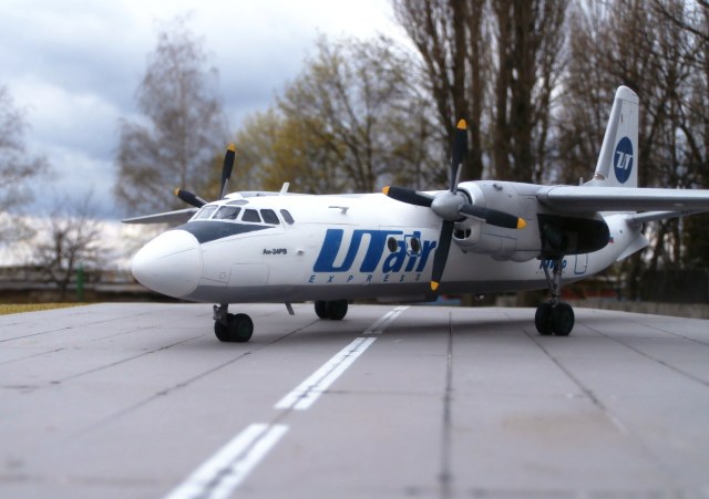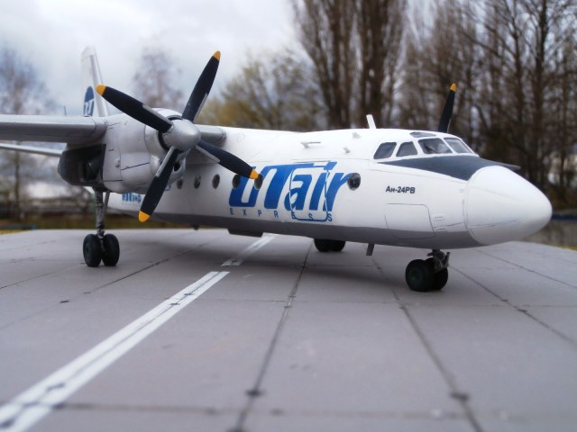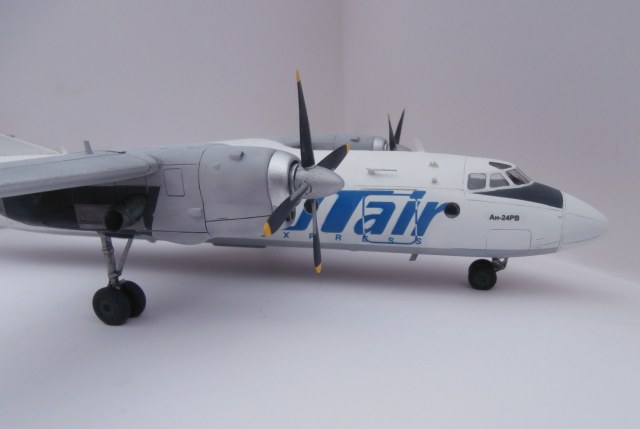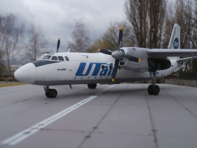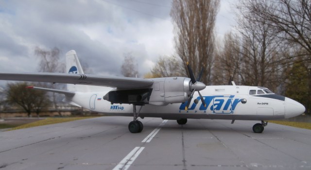 Ан – 24РВ делался по просьбе одного человека, по этой причине у него соответствующая окраска. Набор, всем известный, от «А-модела» с небольшими дополнениями (заменена правая мотогондола).