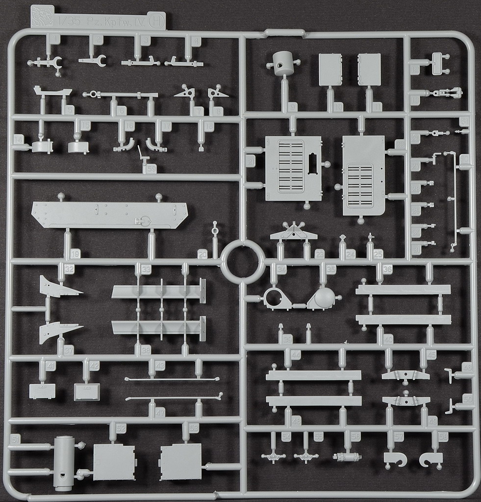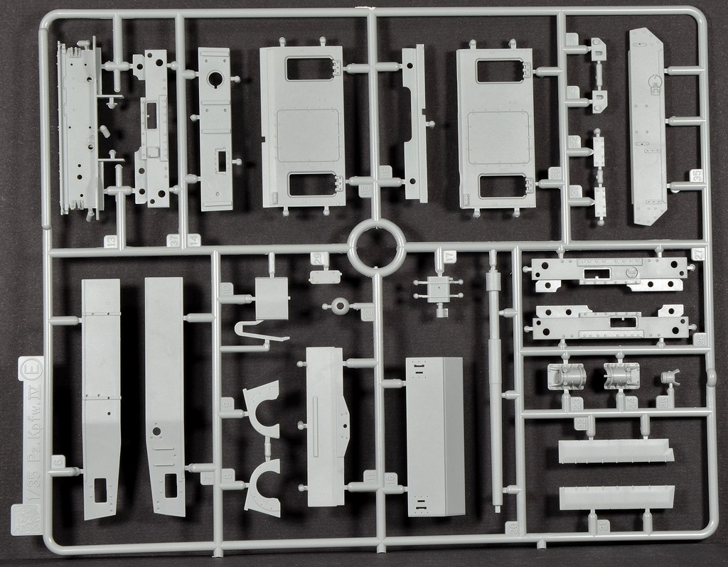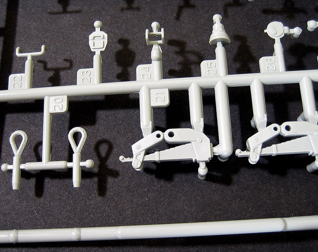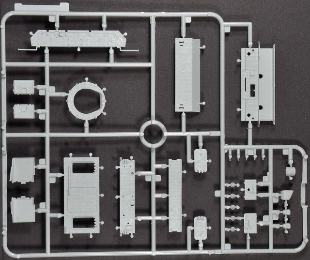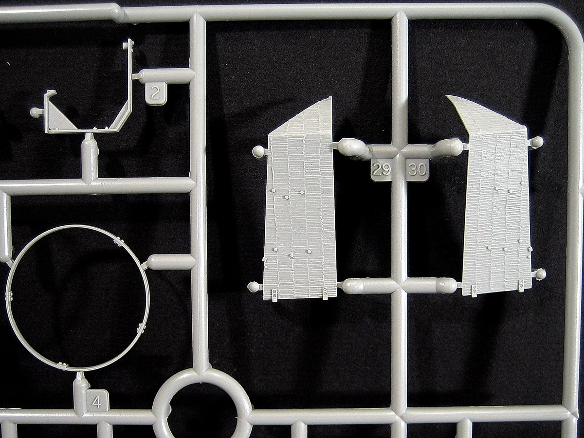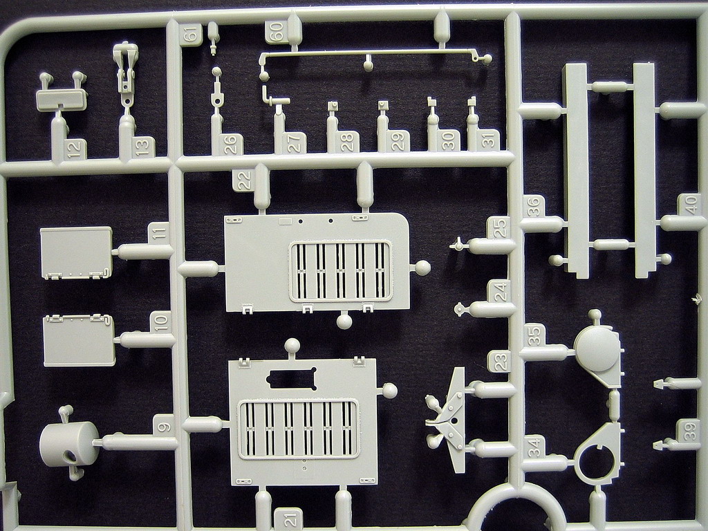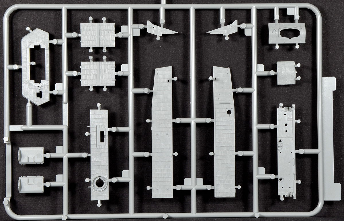 - 28 литников из полистирола светло-серого цвета. Детали башни, ванны и верха корпуса даны отдельными деталями;