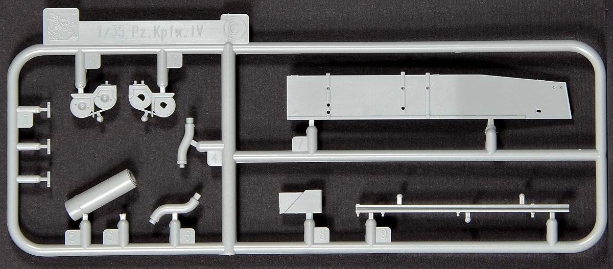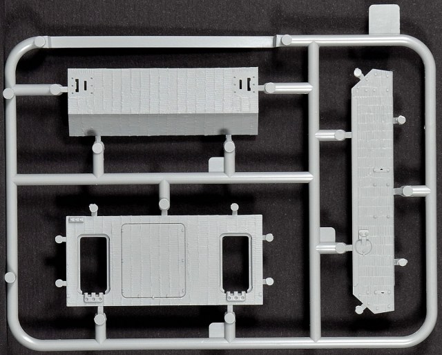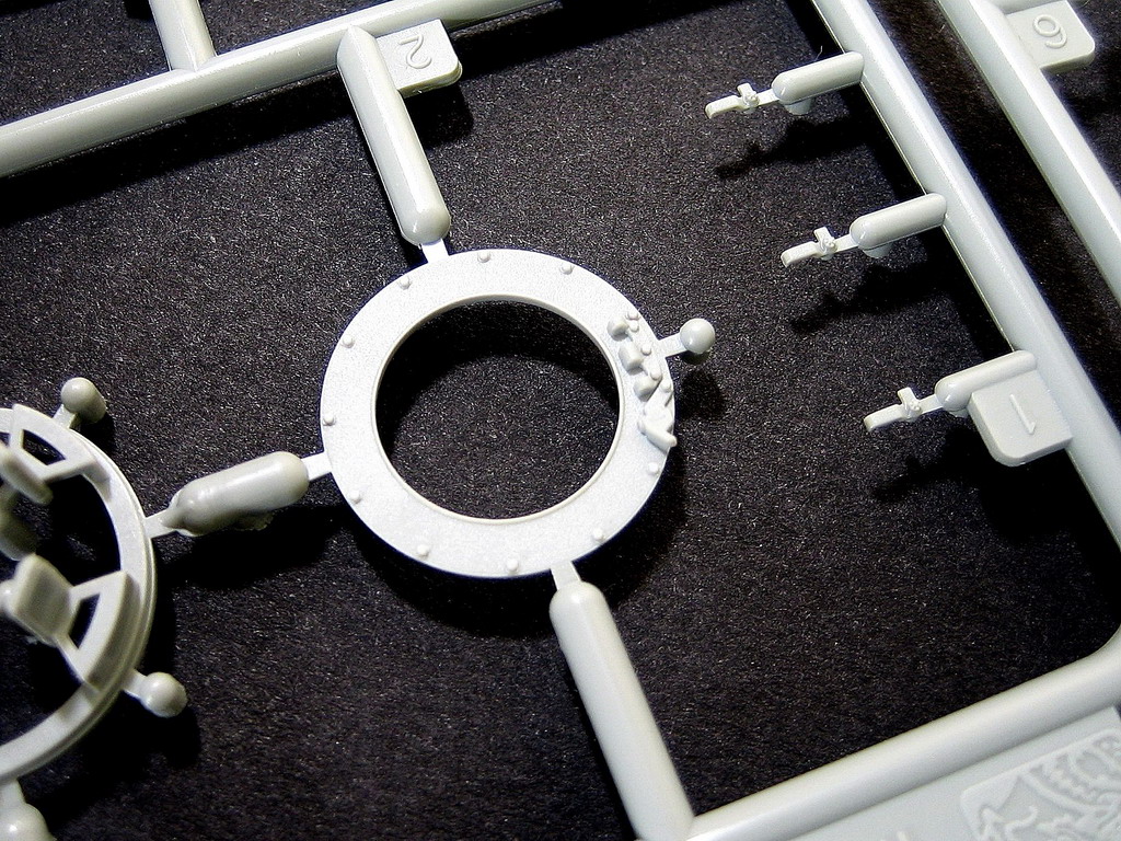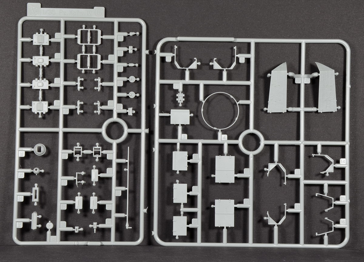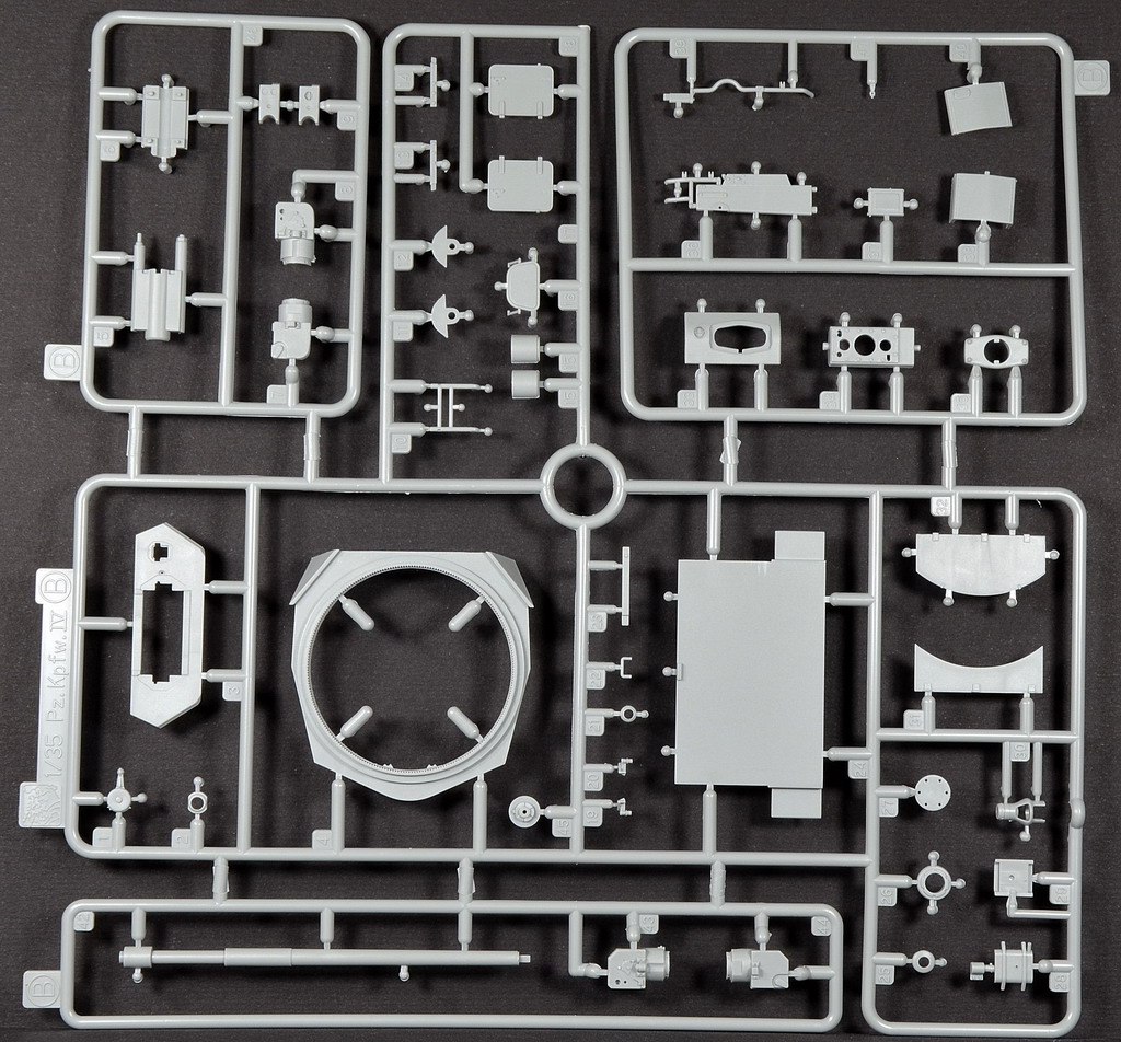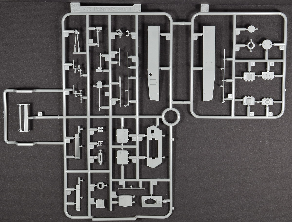 - 28 литников из полистирола светло-серого цвета. Детали башни, ванны и верха корпуса даны отдельными деталями;