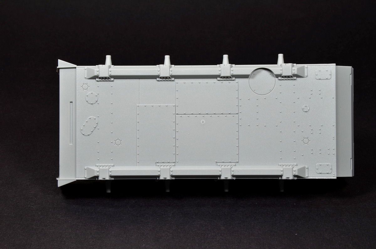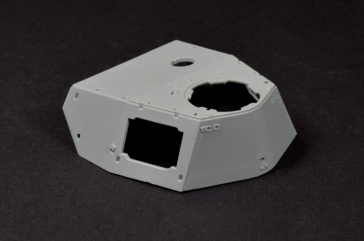 Судя по тому,что в наборе присутствуют накладные лобовые листы на болтах,литник Т, можно собрать еще и раннюю модификацию