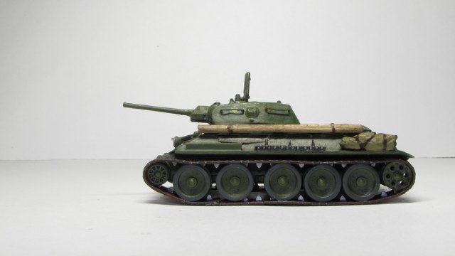 Да, слой краски, или грунта, или что там ещё, убил модель. Очень неаккуратные крепления скатки и бревн, неверно окрашенный кормовой огонь. Ну и гусеницы хотя бы перед съёмкой можно было ровно поставить
