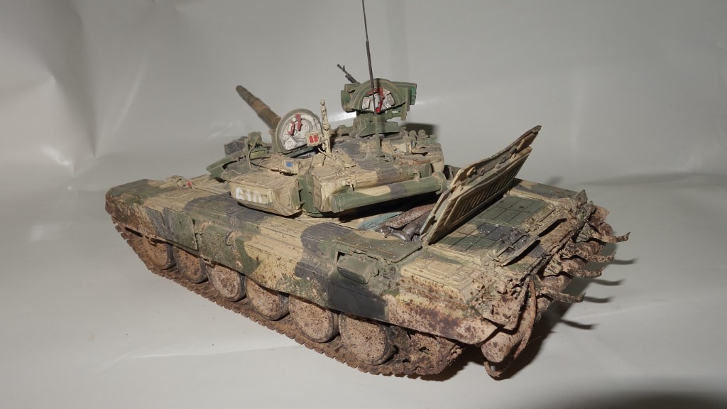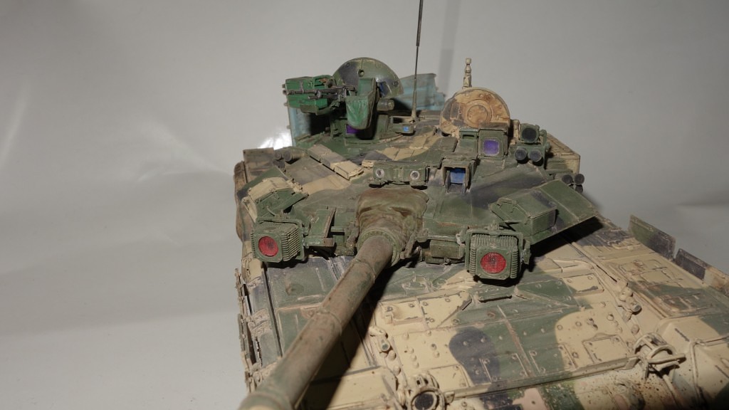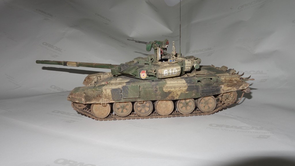 Вот сегодня решил выставить наконец то законченную свою модель танка Т-90, собирал модель где-то 5 месяцев. Набор Meng мне очень понравился в сборке и так же мне понравилась стыковка и проработка деталей(особенно сборка треков). Всегда мечтал чтоб такой красавец пополнел рады моих моделей в витрине. Модель почти из коробочная и из доработок было сделано немного проводки,2 троса и антенна. Танк хотелось сделать с самого начала грязным,просто мне нравиться когда машина не как на параде а рабочая.
