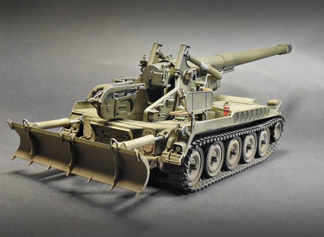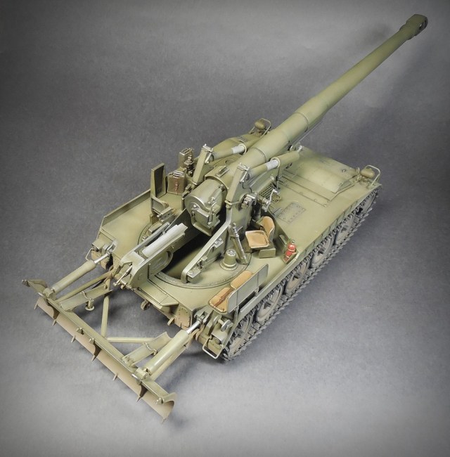 Модель собрана около трёх лет назад http://panzer35.ru/forum/51-9930-1 (правда тогда я так и не сделал финальных фото), но теперь получила второе рождение после падения. Пострадала ходовая, само орудие, отвал. Восстановить конечно удалось, но подвижные части, в результате стали неподвижными.