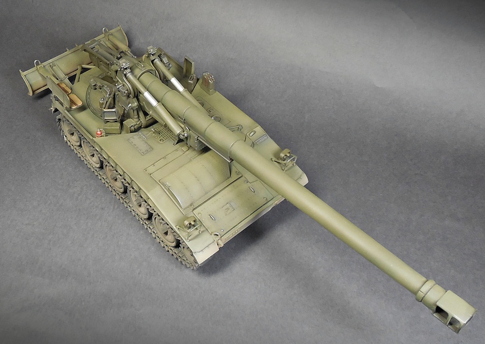 Кит старый и не слишком простой в сборке, повсеместно требовалась шпатлёвка как для заделки щелей, так и для удаления следов толкателей. Афтер в виде травла и металлических гусей по разным причинам не использовал (кстати, спадэйсовские траки не лезут на родные звёздочки), так что это 100% изкоропка.