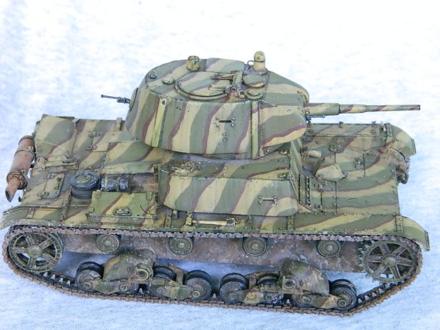 Модель понравилась. Претензий к художественной части нет - большая и кропотливая работа. Да и Мираж - это жесть. Единственный который не смог собрать - Т-26 от Миража, валяется на столе недоделанный....Фон не понравился - нет логики - камо летний, фон больше смахивает на зимний....